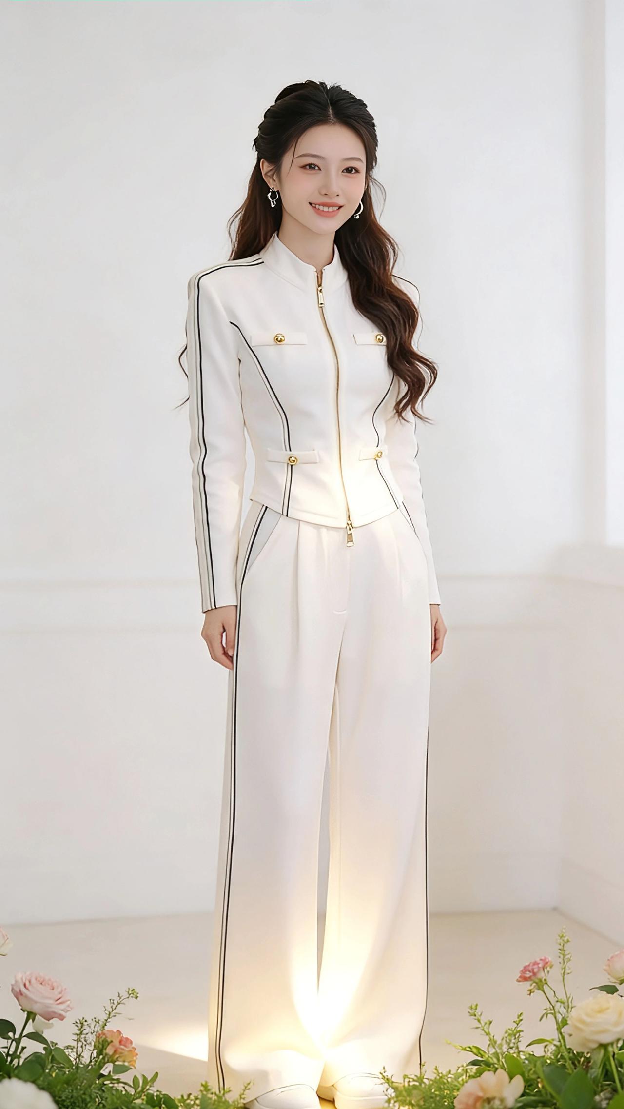 早春穿搭运动装运动休闲显瘦收腰时尚套装白色系运动套装又美又飒