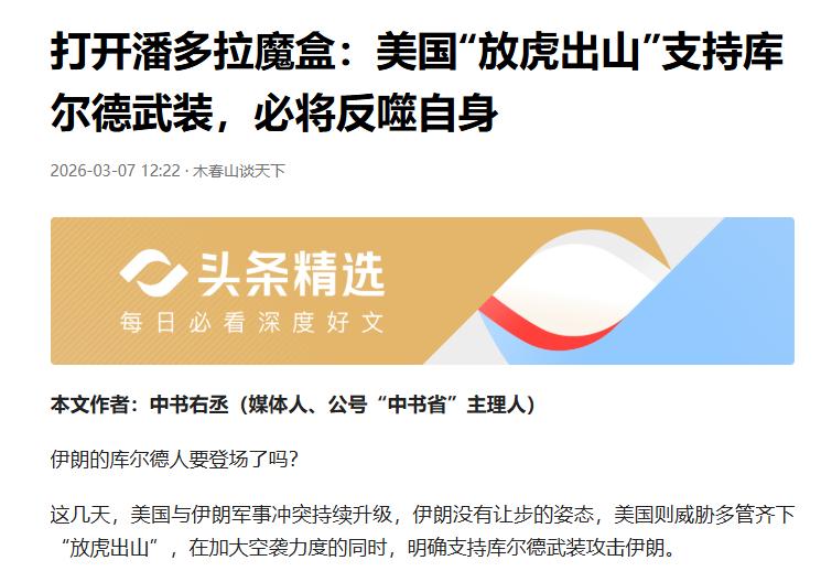 自寻死路!美国“放虎出山”支持库尔德武装,必遭反噬 美伊冲突越打越凶,伊朗丝毫不服软,急疯了的美国又出昏招,居然要“放虎出山”,公开支持库尔德武装去攻击伊朗,自以为找到了削弱伊朗的低成本捷径,殊不知这是打开了潘多拉魔盒,最后只会搬起石头砸自己的脚。 美国打得一手烂算盘,觉得库尔德武装对伊朗有不满,支持他们就能乱了伊朗的阵脚,却忘了历史的教训。以前就有人试过支持库尔德叛乱,结果不仅没搞垮伊朗,反而帮伊朗整合了权力,还催生了强悍的革命卫队,相当于间接帮伊朗变强了。 更可笑的是,美国给库尔德武装的支持少得可怜,根本不足以威胁伊朗,顶多只能激怒伊朗。一旦伊朗被激怒,必然会强硬镇压,还会借机凝聚国内民心,原本对政府不满的民众,也会因为国家主权被侵犯而站到一起,美国这是纯属帮倒忙。 而且这招还会引发地区连锁反应,土耳其、伊拉克等国本身就深受库尔德分裂势力困扰,美国支持库尔德武装,只会让这些国家对美国心生警惕,远离美国,瓦解美国的地区同盟。美国自以为聪明,实则是自断后路,这种愚蠢的操作,注定会让它付出惨痛代价,反噬自身是迟早的事。至于美国还会耍出什么昏招,里面藏着的算计,等着我们慢慢看清。