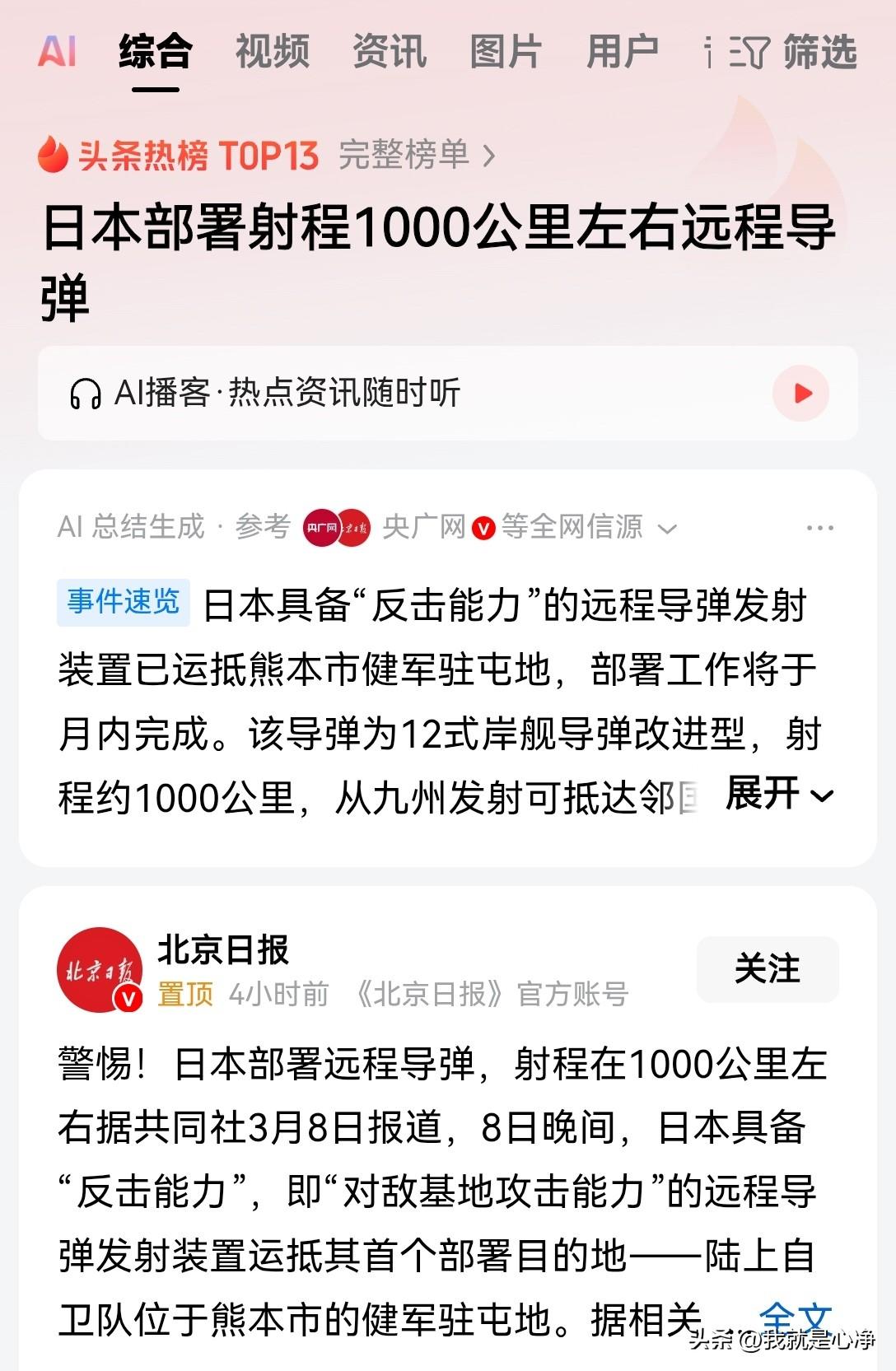 就这点狼子野心,算是昭然若揭了!日本人还是想赌一把 最新消息据日本共同社3月8号报道称,当地时间8号晚间日本在熊本市的建军屯驻地部署了射程,在1000公里左右的远程导弹系统 据媒体爆料称,该导弹名为12式岸舰导弹改进型 射程在1000公里左右,从九州发射可以直接攻击我国领海区 也就是说,该款导弹可以直接,威胁我们国家长三角地区以及胶东半岛,还有辽东半岛 值得一提的是,2022年时候,日本政府曾经对外透露过,这款导弹计划在2027年部署 而现在仅仅是26年年初,该款导弹就已经提前部署了 说明日本政府对未来的局势非常不看好,他们正在进行积极的备战 按照二战之后国际法约定,日本这个国家只能维持有限的自卫队,不能建设任何进攻性武器 超过1000公里的导弹都已经部署上去了,说明日本多年前就已经撕毁了二战后联合国给予他身上的所有束缚约定 日本国家的战略已经从防御转向了进攻 狼爪子已经伸出来了,我们应该怎么办呢? 真的应该改一改思路了,不能再被动防御了,而应该主动积极出击 战败国条例应该用一用了,中国作为二战胜利国之一,有权利主动对这些军国主义国家展开军事行动 灭掉他们所有潜在的军事威胁