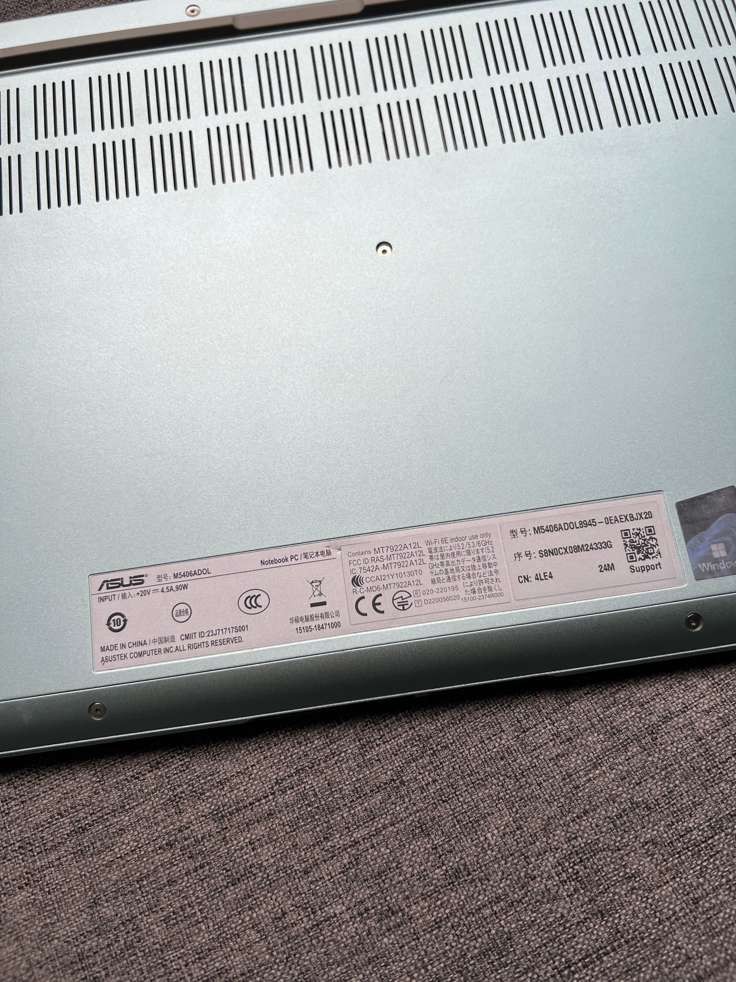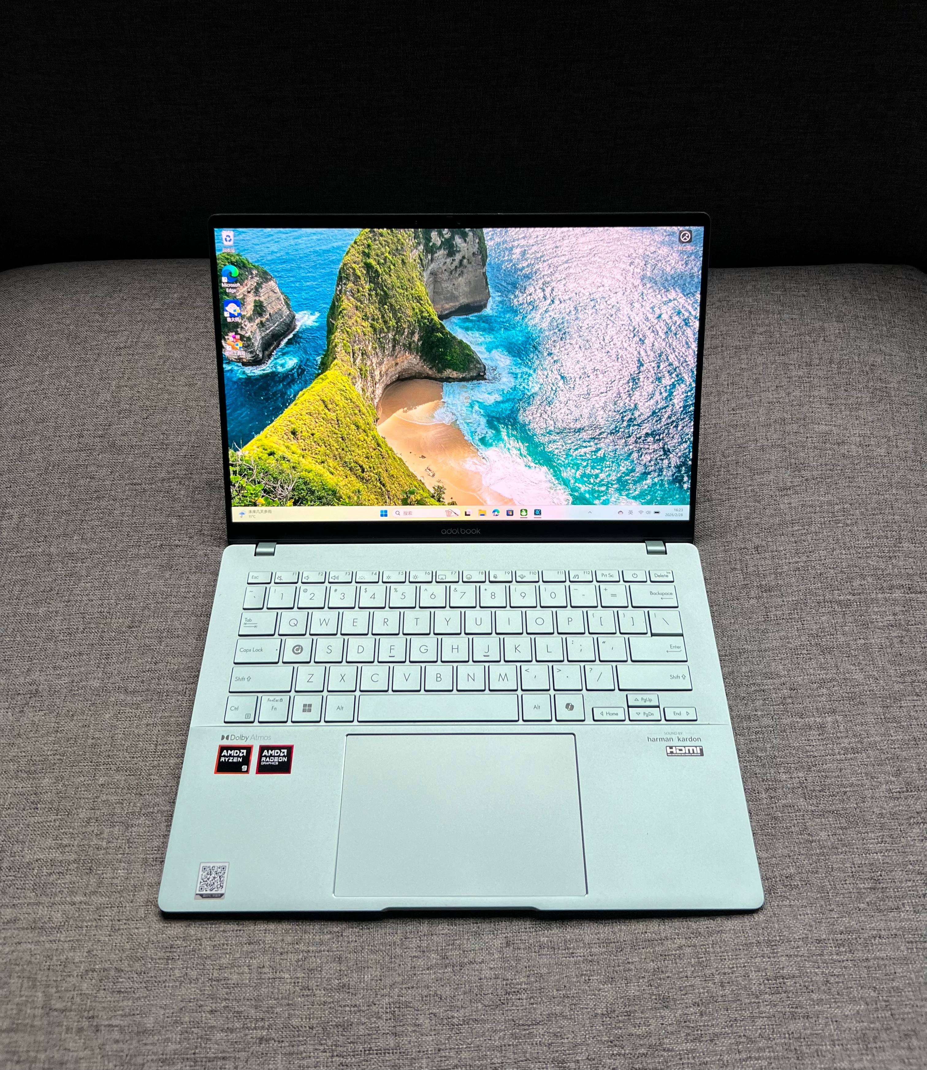 2024款华硕a豆14 Air 16+1T 锐龙R9-8945 鼠尾草青,95新,屏幕外壳细微磕碰划痕,带充电器,全国联保至2026-09-10,3399