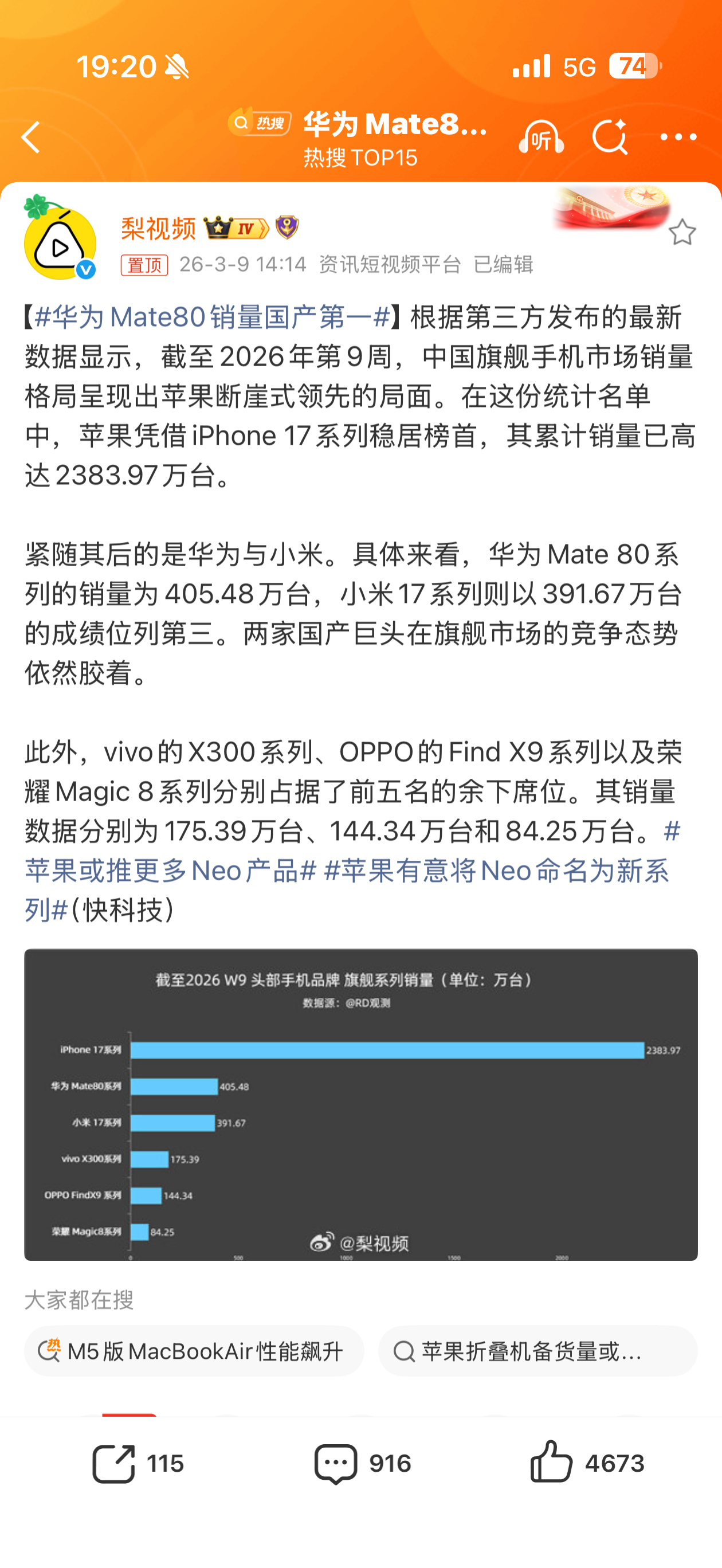 华为Mate80销量国产第一这个对比图好直观…iPhone 17还是断层领先不过遥想前两年的特斯拉和国产新能源差距也很大,但情况已经在逆转