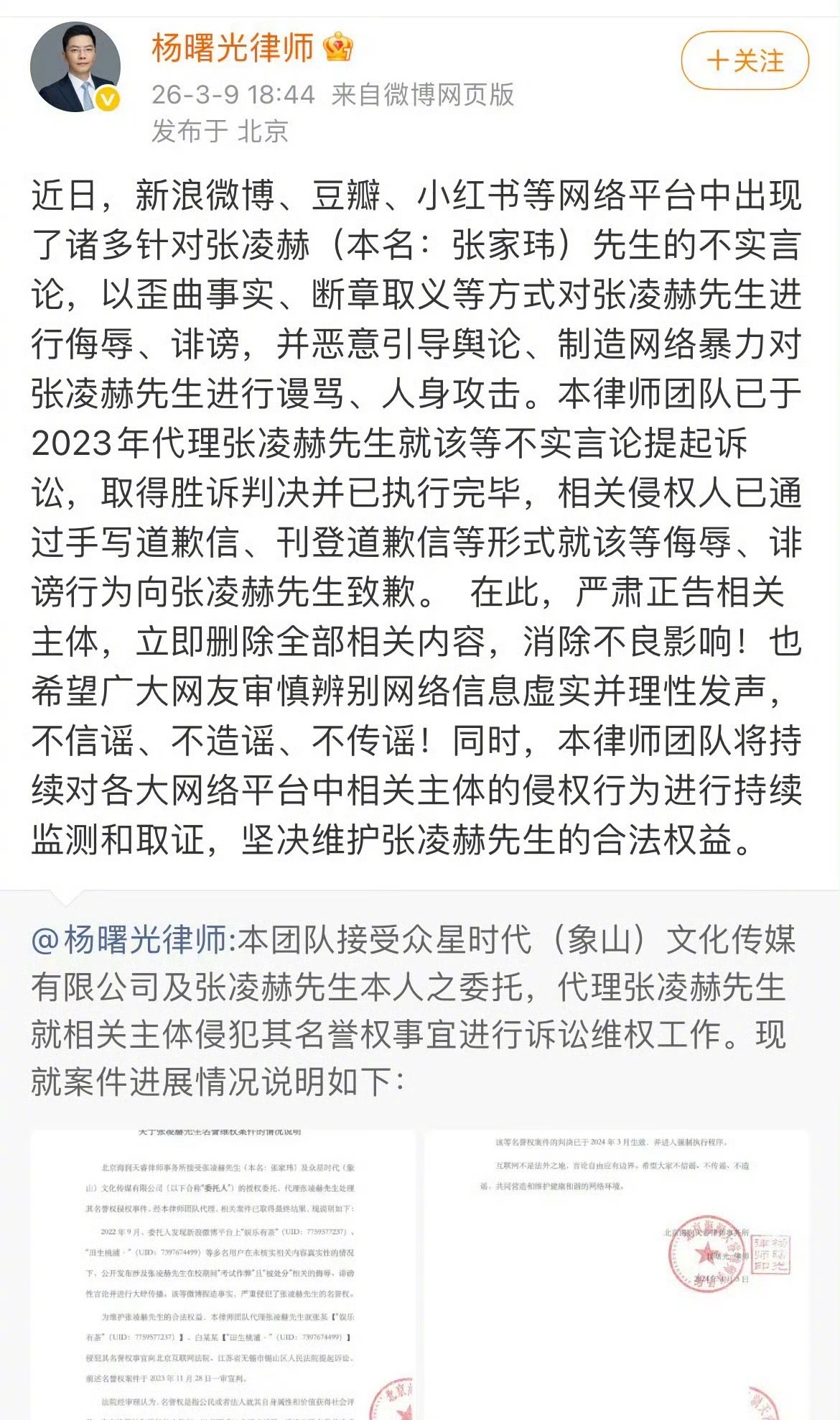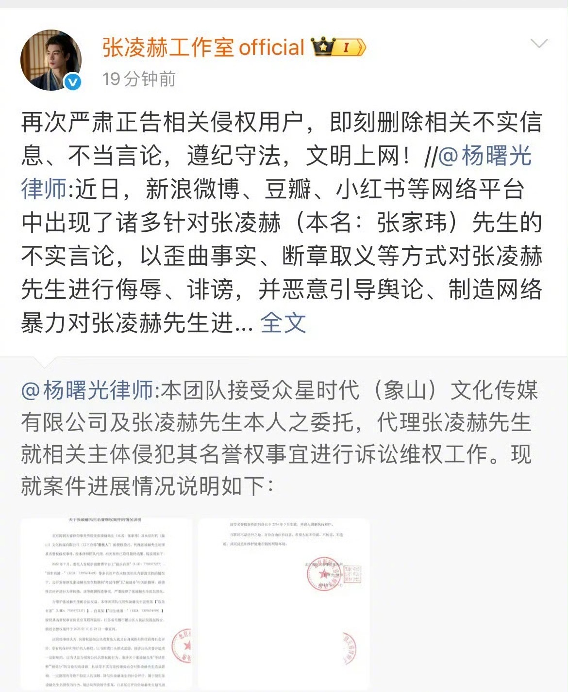 张凌赫工作室发告黑声明了!