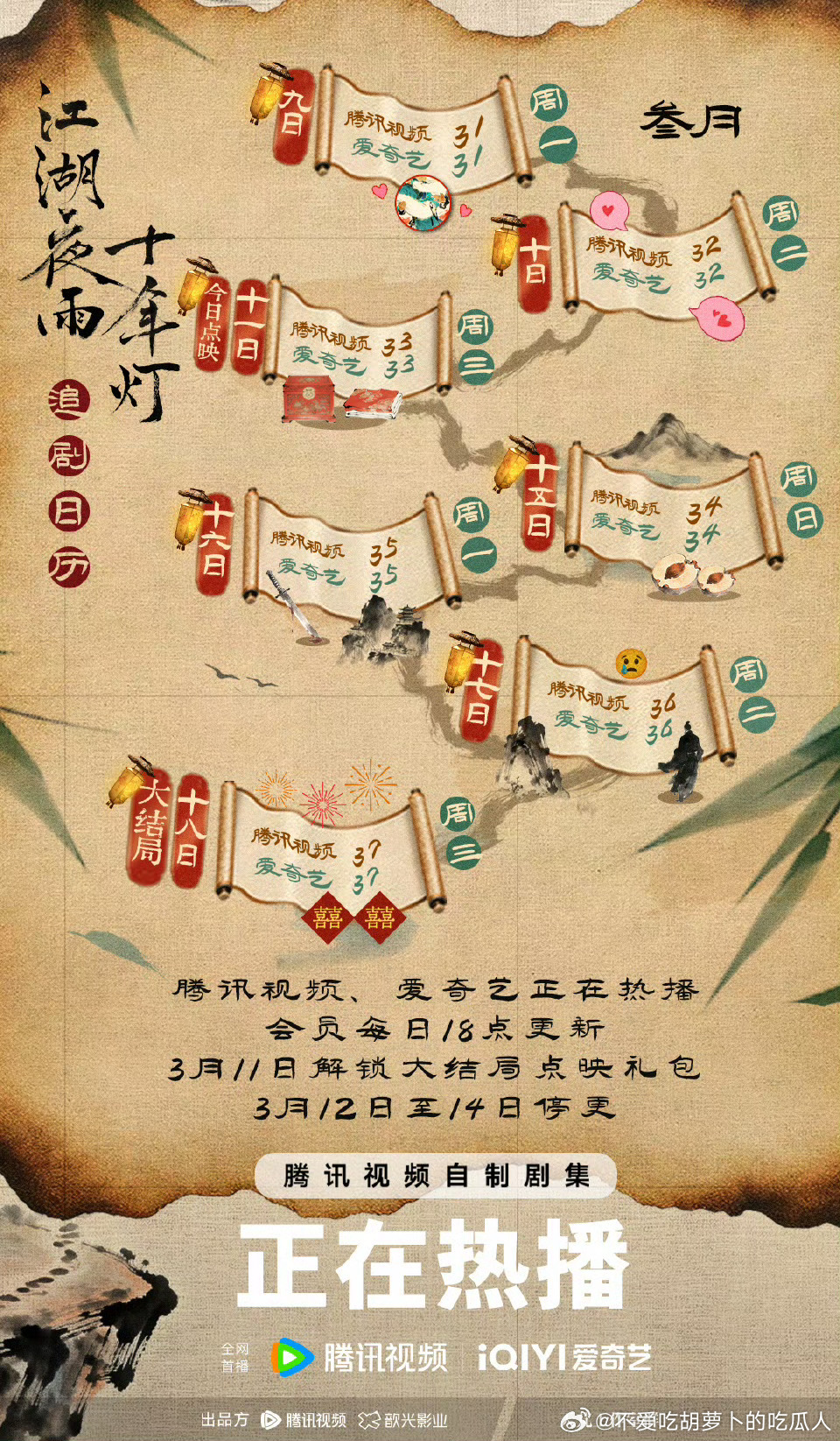 腾讯&爱奇艺江湖夜雨十年灯将于3.11开超点,直通大结局。