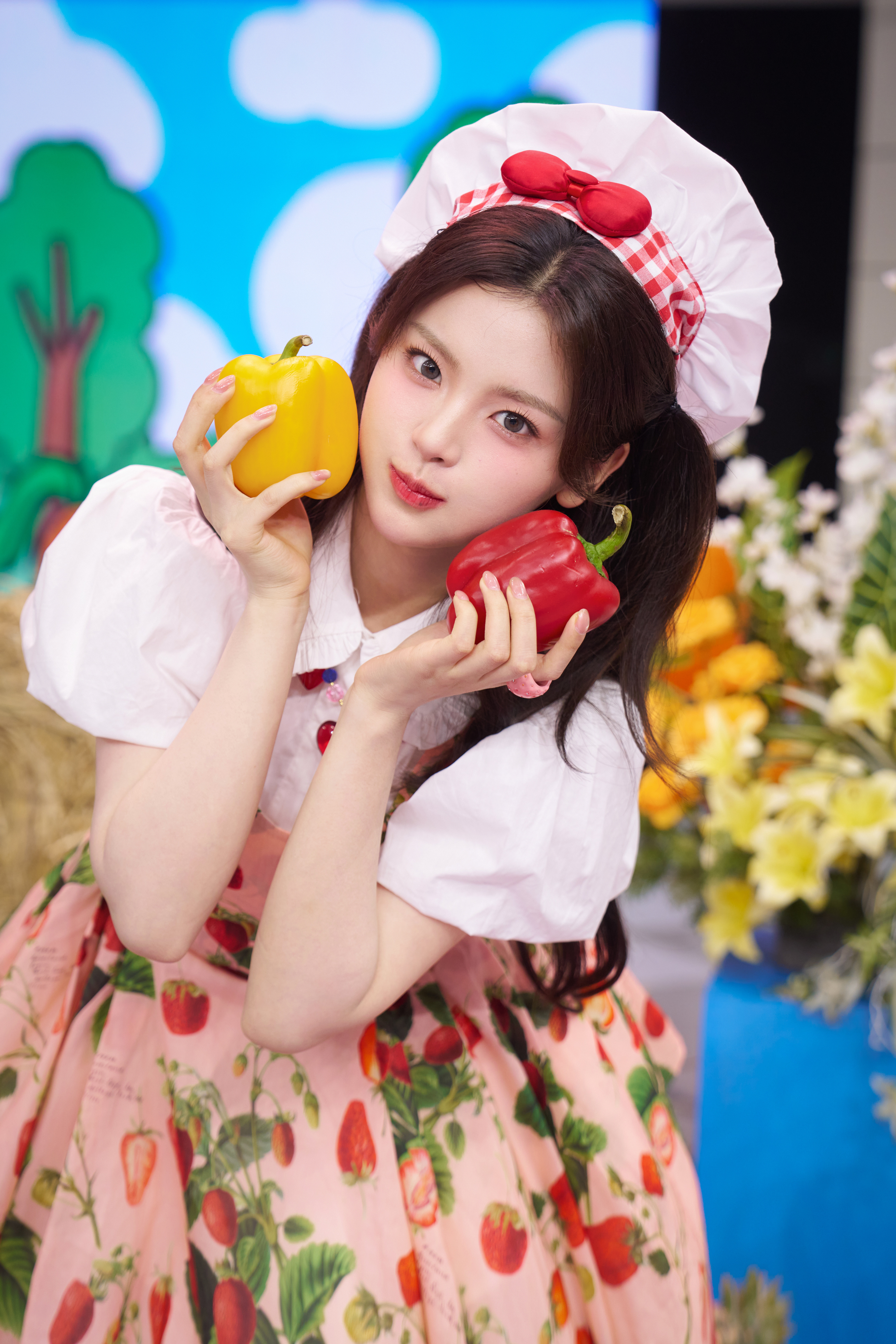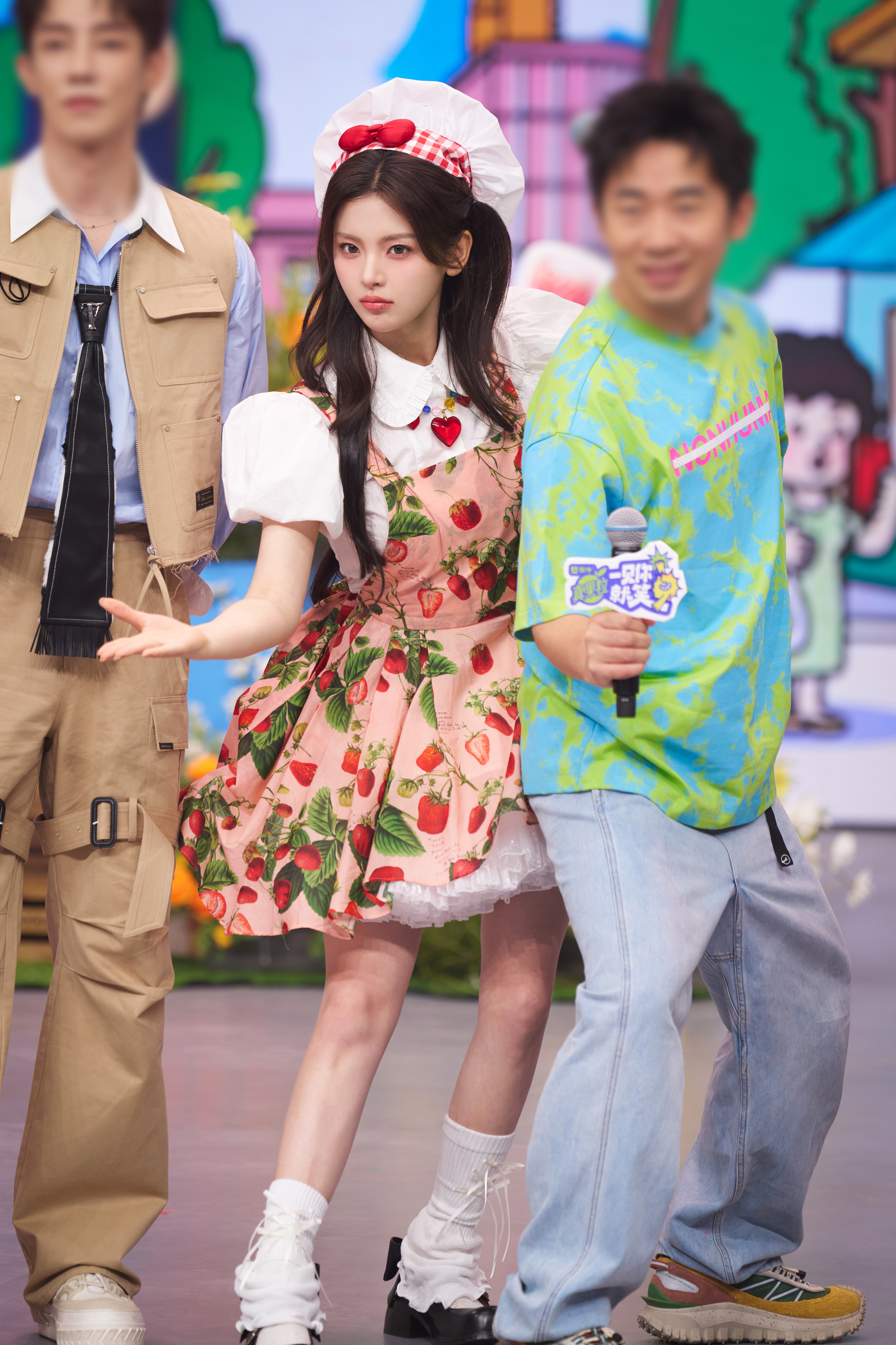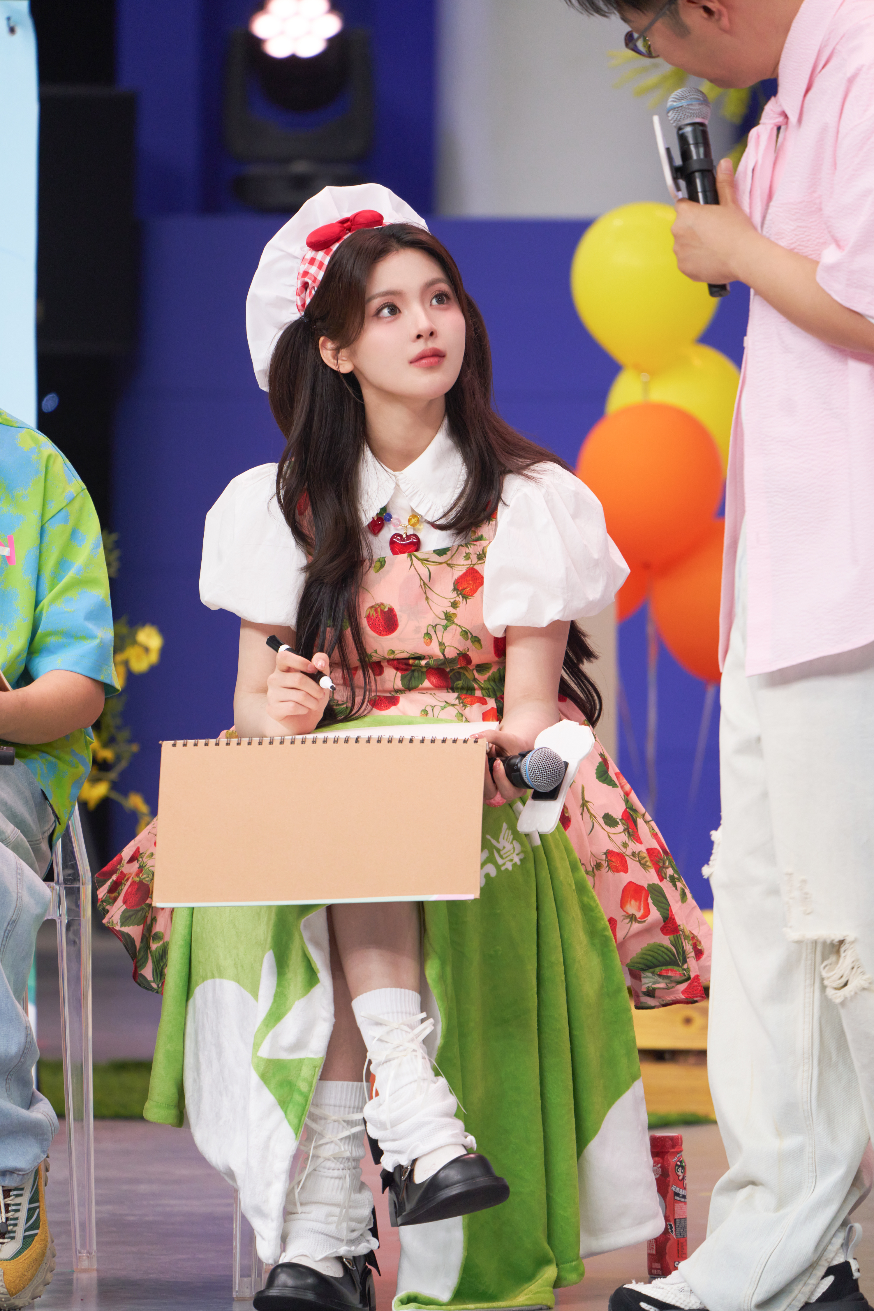 杨超越 中国有自己的张元英超越妹妹草莓蓬蓬厨娘裙 白色堆堆袜 黑色乐福鞋 好卡哇伊