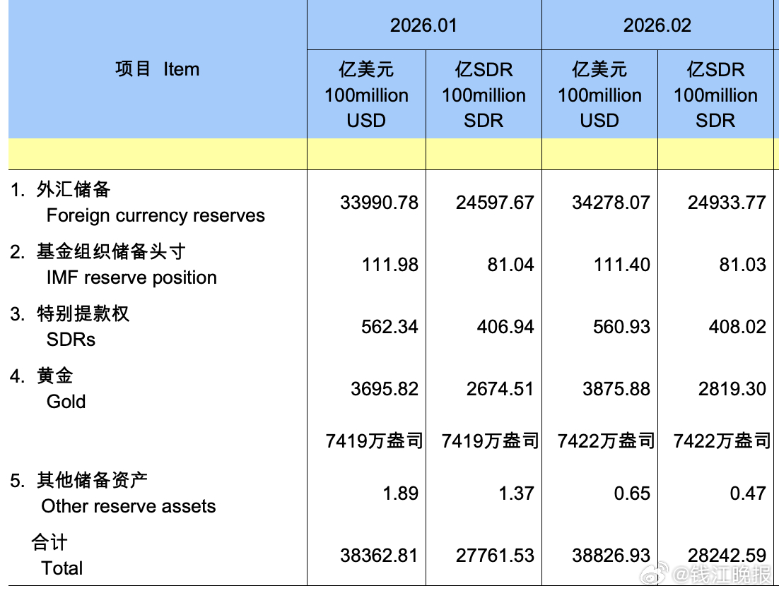 消息面上,中国人民银行最新数据显示:截至2026年2月末,我国黄金储备达7422万盎司,较1月末增加3万盎司,实现连续16个月净增持;同期,外汇储备规模为34278亿美元,环比增加287亿美元,升幅0.85%,已连续7个月增长。