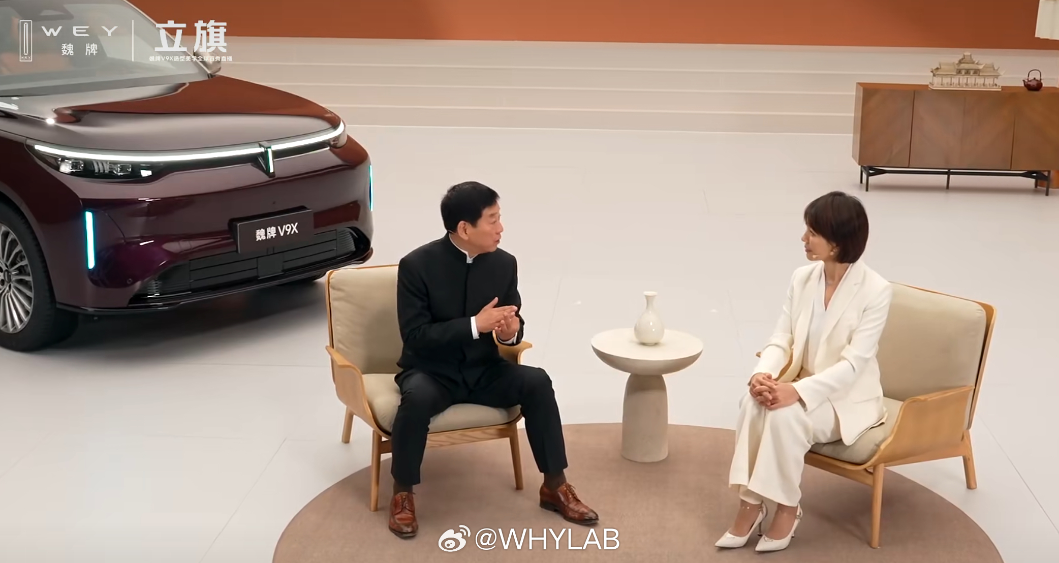 魏牌 V9X 造型美学全球首秀直播开始了,前脸气场很足,配备悬浮式车标,还有双拼色车身。