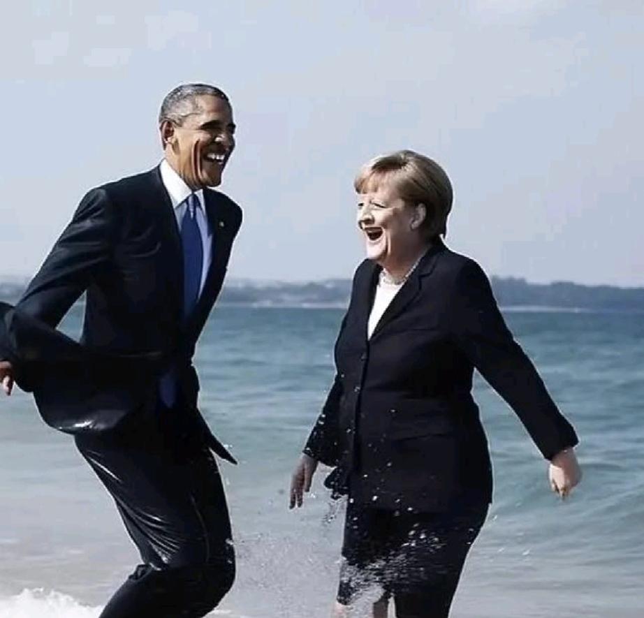 富态的默克尔像个可爱的老大姐,开朗的奥巴马像个顽皮的小老弟。 姐弟间的互动快乐而真诚。