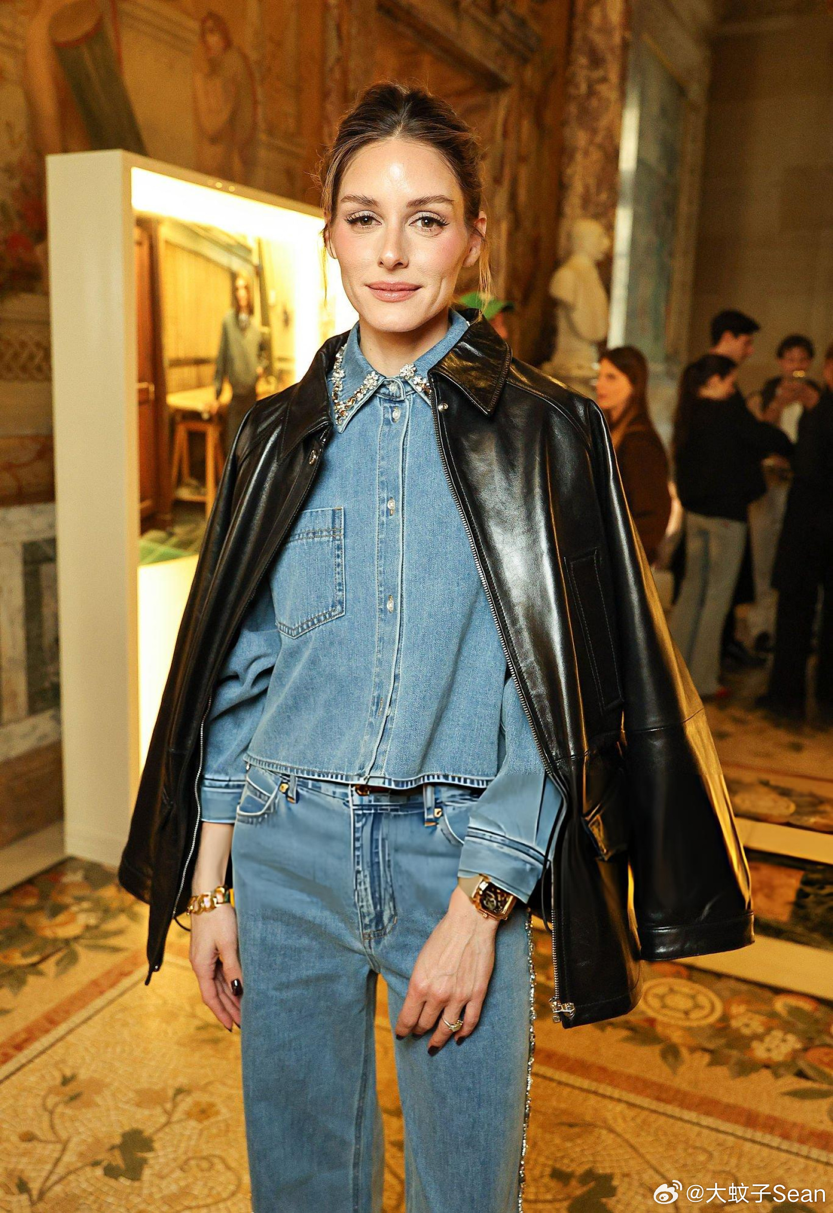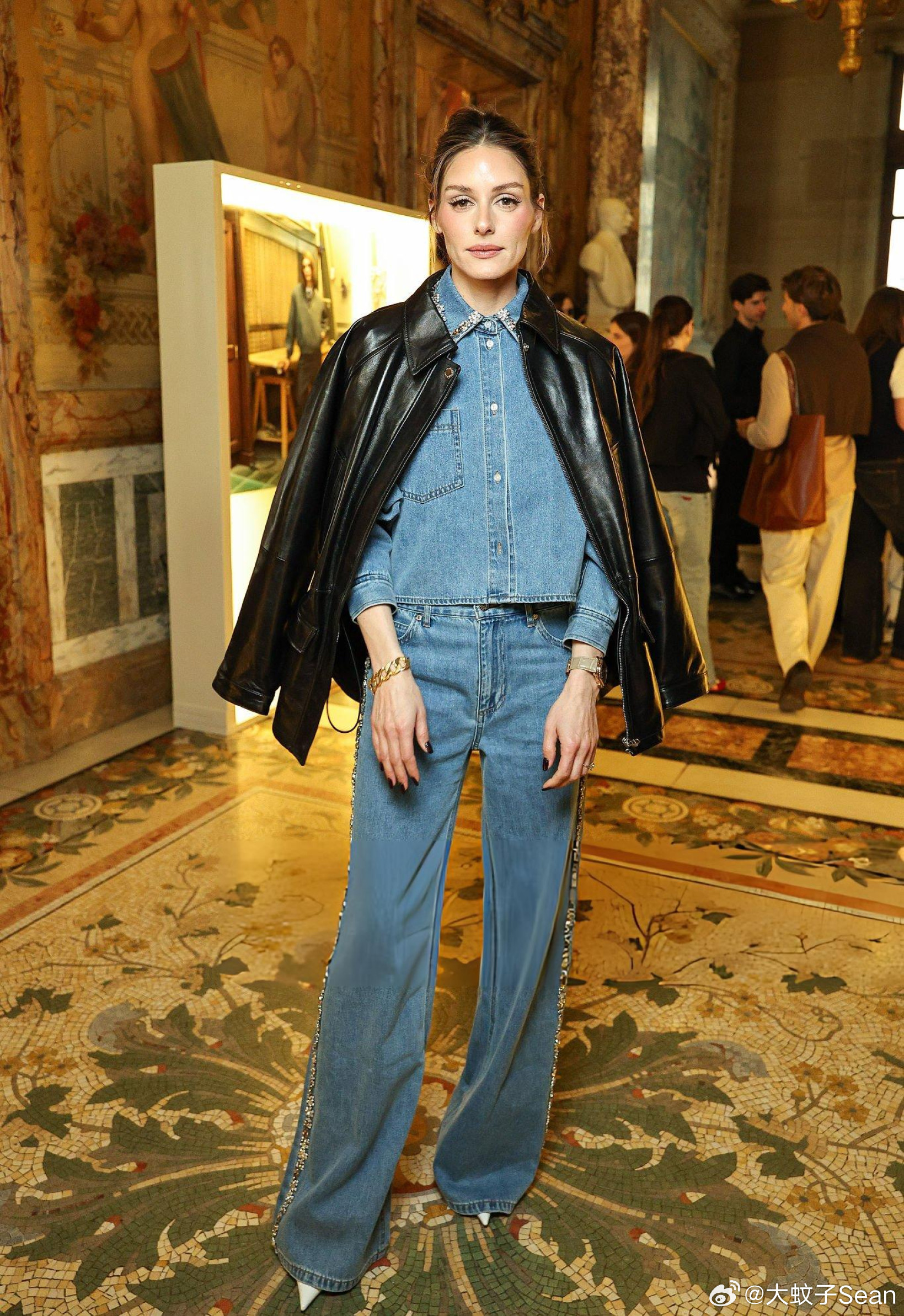 Olivia Palermo奥利维亚巴勒莫在巴黎时装周期间出席观看Sandro品牌新一季的大秀,搭了一套特别显身板的钻饰单宁套装