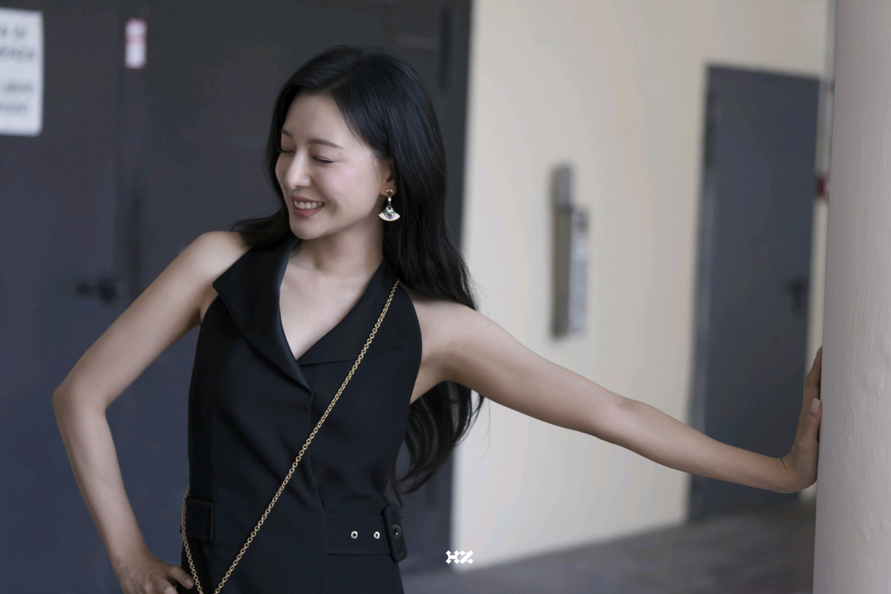 刘亦菲这条裤子挺养生,毕竟降温了肚脐眼必须护住啊