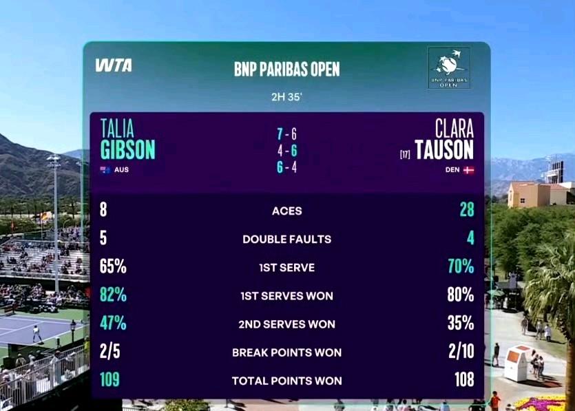 陶森28记ace,只有4个双误,一发进球率高达70%,最终还是输了。 有点心疼陶森,总分只差对手一分,全在关键分掉链子了。