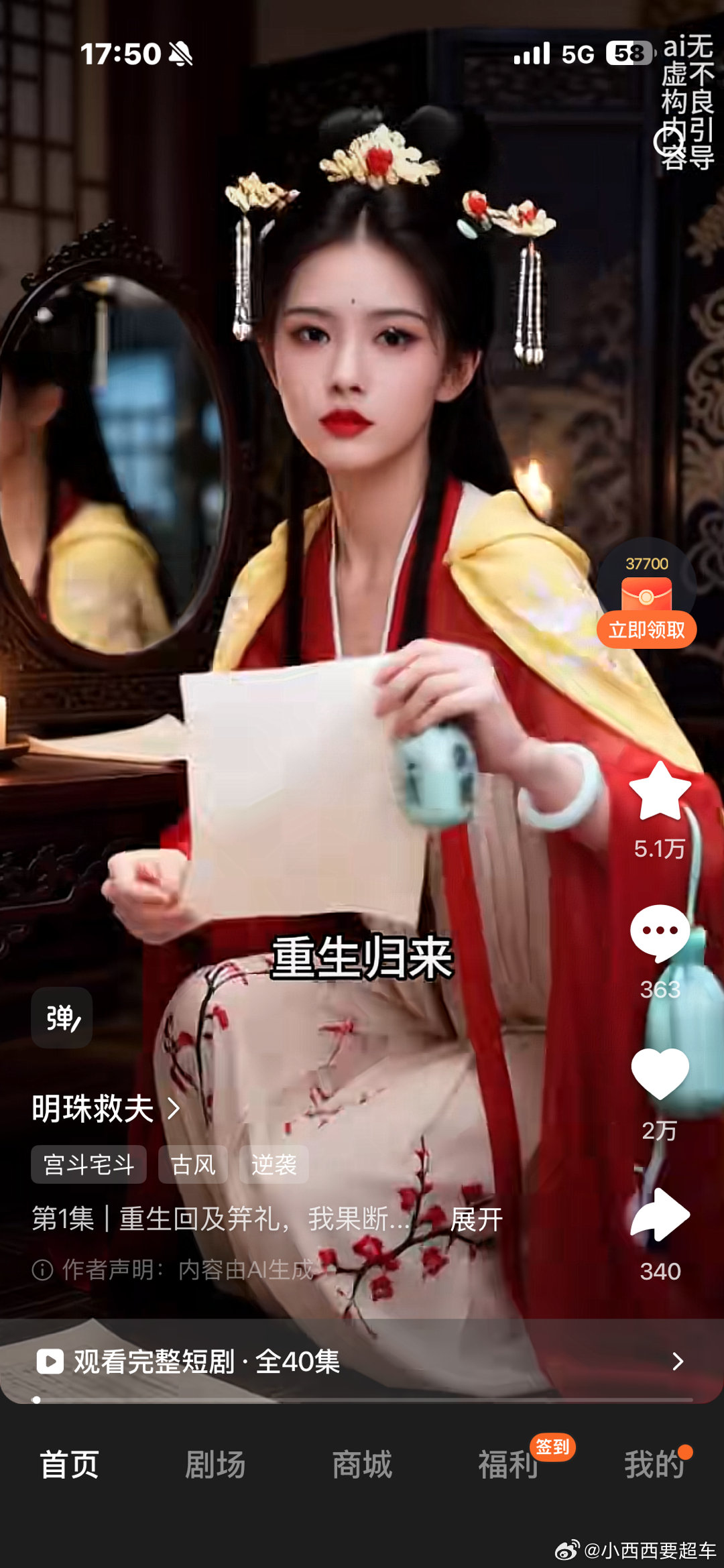 AI焦虑症已经看了至少10部AI短剧了……感觉一点也不违和,AI人的表情夸张点也没关系,重点是延续了爽文剧情,主角不能受一点委屈,有仇必报,反派最后必须被拖出去斩了或者流落街头捡垃圾