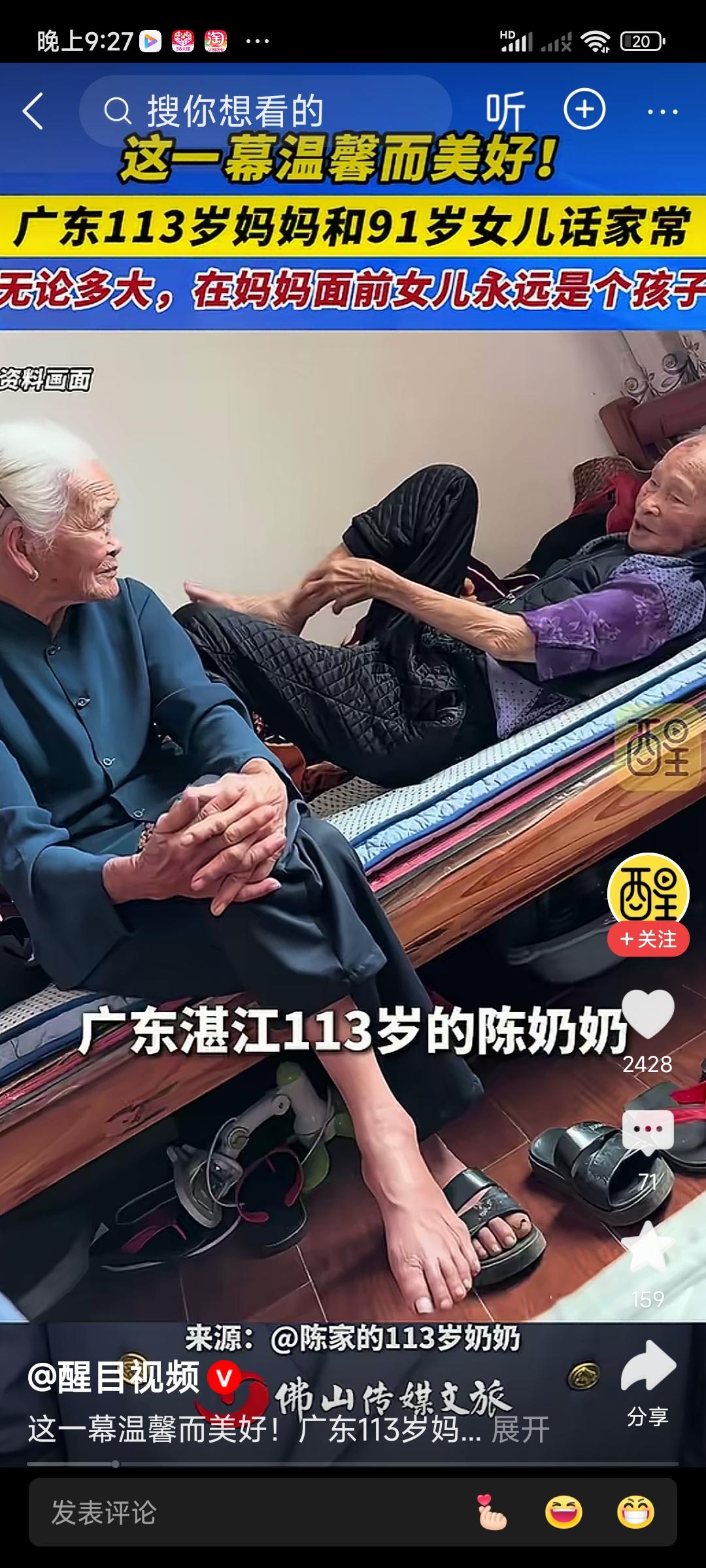 113岁妈妈陪91岁女儿话家常:世上最幸福的事,是我多大,都能当妈眼里的孩子 广东东莞的一户普通民居里,一段短短几十秒的视频,没有华丽的布景,没有煽情的配乐,却瞬间戳中千万网友泪点,刷屏全网。 镜头里,113岁的白靖老人头发花白,眼神温和,坐在椅子上身子微微挺直,耐心地听着身旁91岁的女儿唠嗑。女儿满头银丝,脸上布满岁月的皱纹,可对着妈妈说话时,语气里带着几分软糯,像个没长大的小姑娘,细细碎碎地说着日常琐事,没有惊天动地的大事,全是家长里短的温情。 很多人看完破防了:91岁了,居然还能有妈妈可以撒娇,还能安安心心做个孩子,这才是人间顶级的幸福啊! 我们总以为,人老了,就该是独当一面的长辈,要沉稳,要懂事,要照顾后辈。可在妈妈面前,年龄从来都只是数字。113岁的妈妈,历经三个世纪的风雨,见过乱世浮沉,尝过人间疾苦,可在她心里,女儿永远是那个需要牵挂、需要呵护的小孩。她记着女儿的喜好,耐心听她诉说琐碎,哪怕话语不多,轻轻拍一拍女儿的手背,就是最温暖的慰藉。 而91岁的女儿,早已儿孙绕膝,当了一辈子长辈,操了一辈子心,可回到妈妈身边,就能瞬间卸下所有疲惫和坚强,不用伪装,不用逞强,把生活里的小情绪、小日常,一股脑说给妈妈听。这种被人永远放在心尖上疼爱的感觉,无关年纪,只关乎母爱。 这世上,有一种永远不会变的爱,叫母爱;有一种永远不会老的身份,叫孩子。不管你是三十岁、五十岁,还是九十岁,只要妈妈还在,你就永远有退路,永远有个可以随时回去的家,永远有人把你当成小孩来疼爱。 我们忙着长大,忙着奔波,忙着成为别人眼中的大人,却常常忘了,在妈妈那里,我们始终是那个需要被惦记的孩子。看着这对母女的模样,多少人红了眼眶,想起了自己的妈妈:多久没好好跟妈妈唠一次家常了?多久没好好抱抱妈妈了? 岁月无情,母爱永恒。比起长寿的奇迹,这份跨越近一个世纪的母女情,才最让人动容。愿天下所有的妈妈都安康长寿,愿我们都能珍惜这份独一无二的偏爱,在妈妈身边,永远做个幸福的小孩。 看完这段视频,你有没有想起自己的妈妈?评论区说说你和妈妈最暖心的小事吧!
