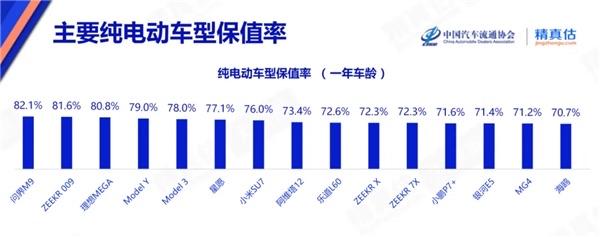 纯电车保值率出炉,你的座驾排在哪? 近日,中国汽车流通协会发布了纯电车型保值率数据,在一年车龄的纯电车型榜单中,问界M9以82.1%的保值率稳居榜首,紧随其后的是极氪009与理想MEGA,分别以81.6%、80.8%的保值率位列第二、三位,特斯拉Model Y、Model 3也表现不俗,分别以79.0%、78.0%的成绩跻身前五,小米SU7以76.0%的保值率排在第七位,榜单中,吉利星愿、阿维塔12、乐道L60等车型也悉数上榜,整体保值率均维持在70%以上,打破了“电动车落地对折”的传统认知。你的座驾排在哪,你找到了吗?