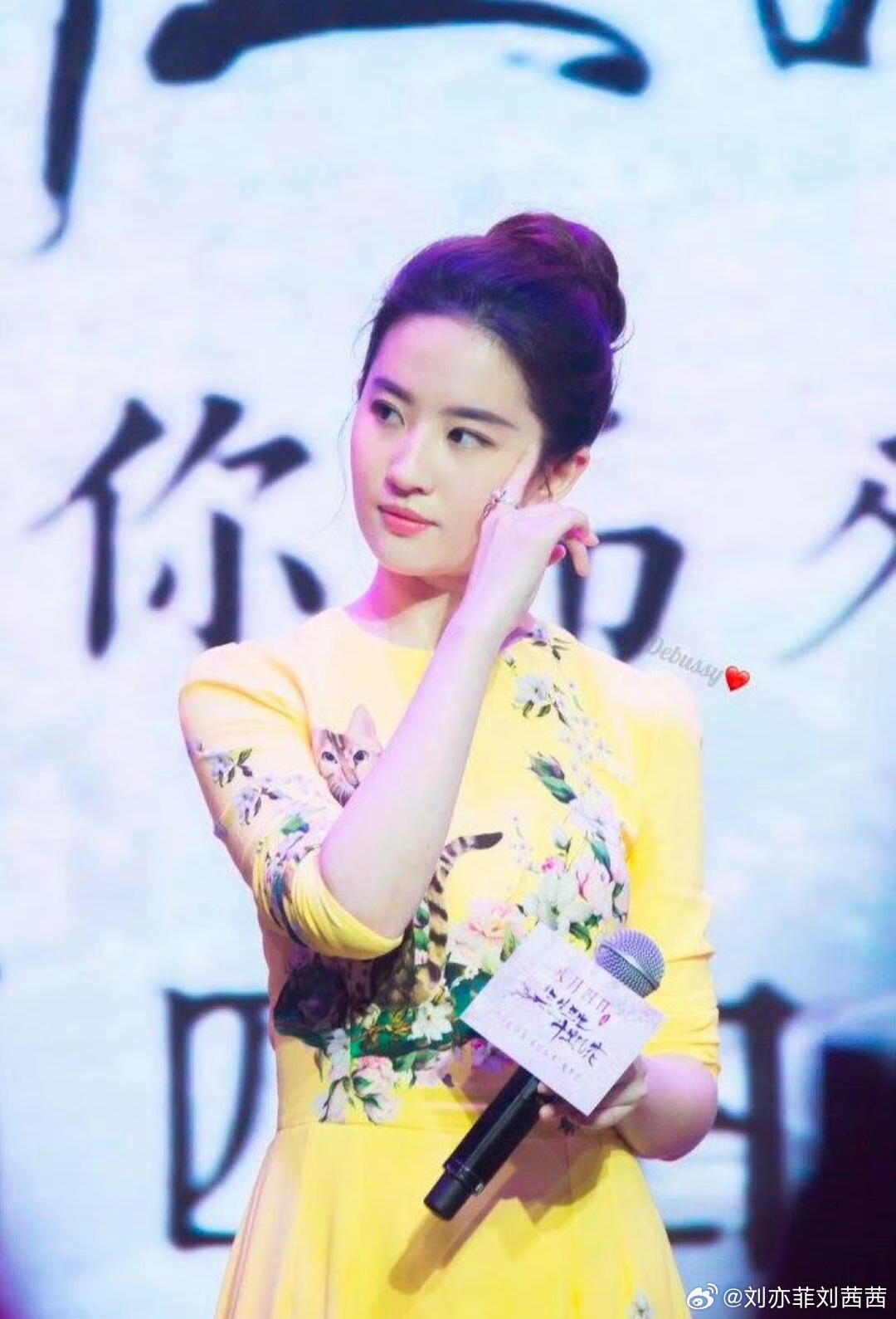 利落的丸子头让她显得格外清爽,明黄裙装更是让她像春日里的一抹暖阳,耀眼夺目又不失温柔亲和力。刘亦菲刘亦菲
