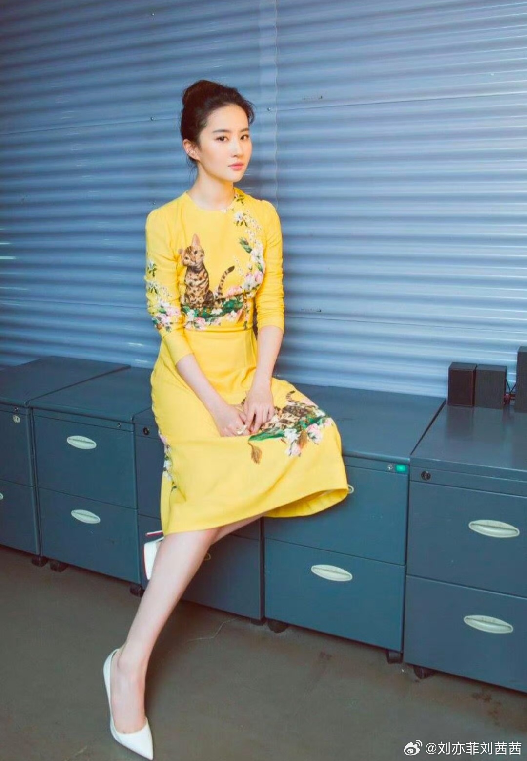 刘亦菲此次选择的明黄色收腰连衣裙,高饱和度的色彩明媚又吸睛,完美衬托出她白皙的肌肤。裙身上的豹猫与花卉图案,复古又充满艺术感,打破了纯色的单调,增添了几分灵动与俏皮。