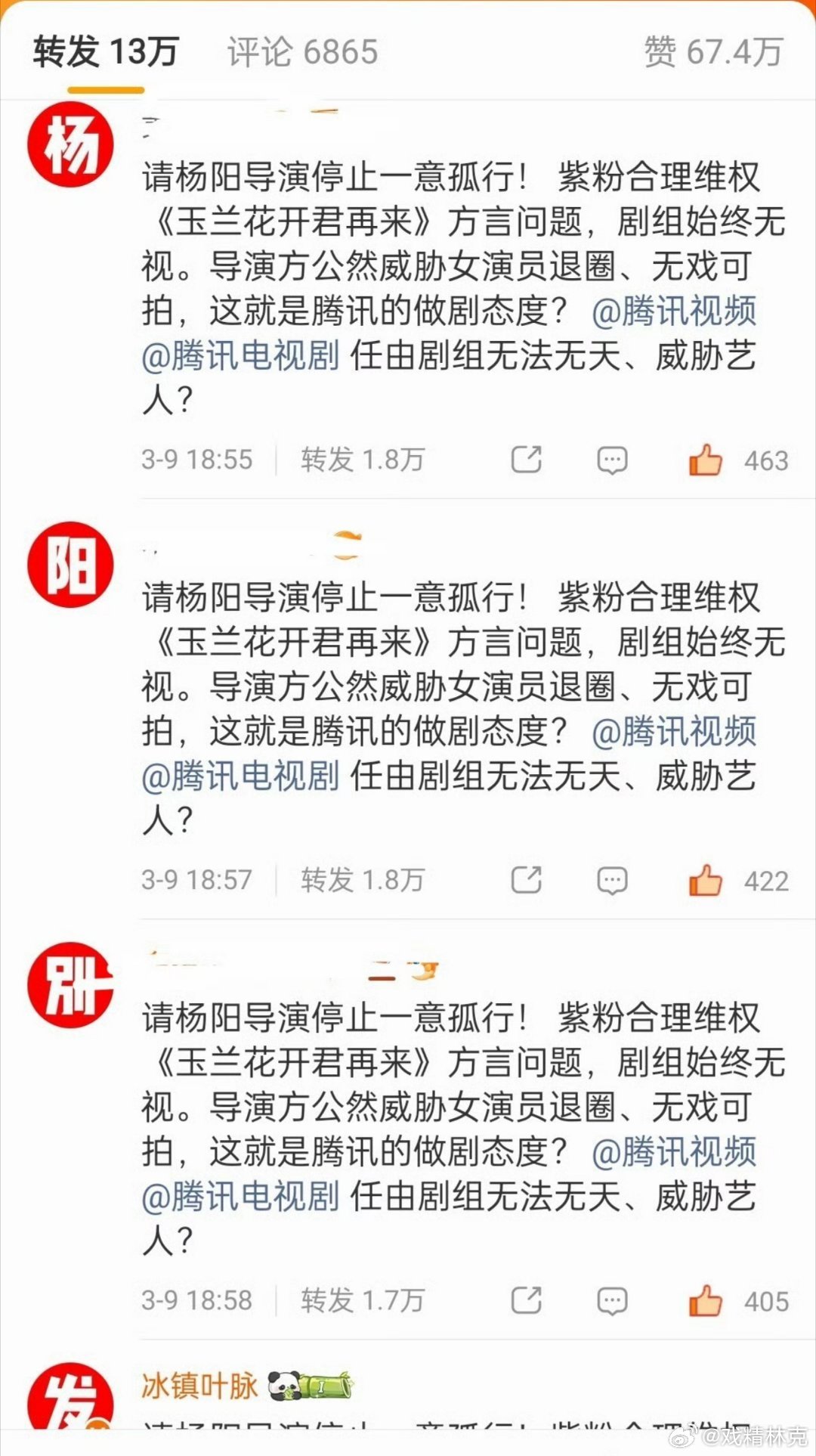 玉兰花开君再来导演杨阳被排字,杨紫直播透露的方言问题被威胁言论进一步激化了