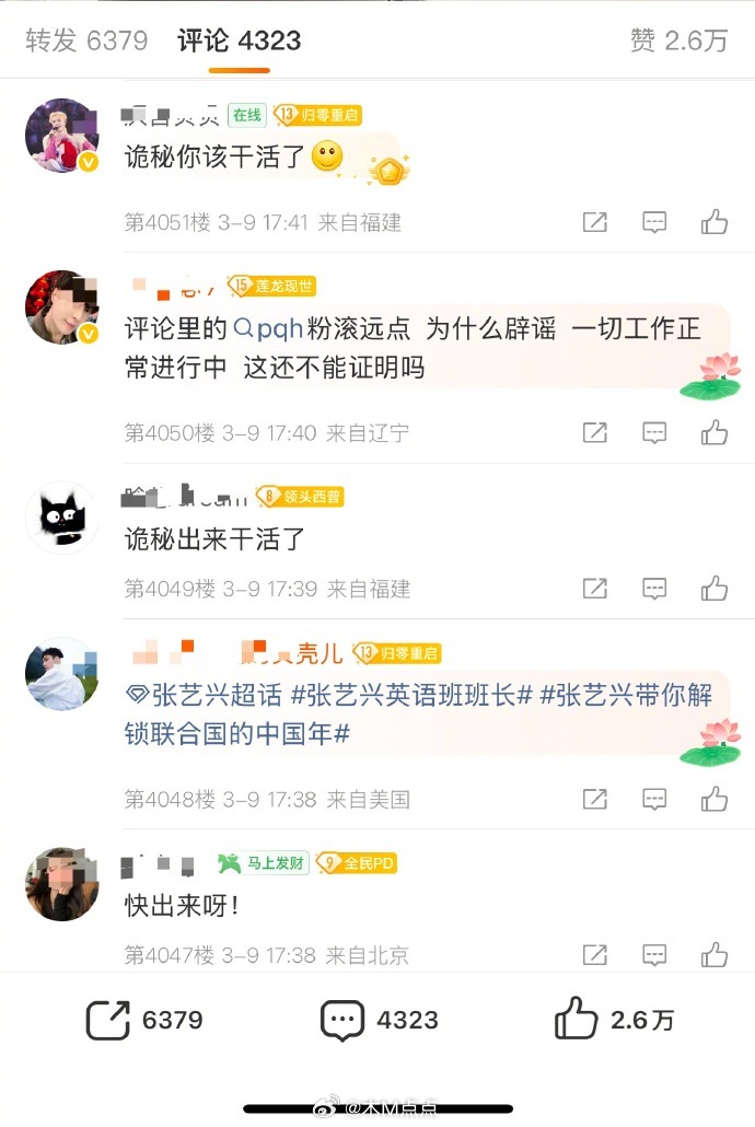 按照以往惯例,大名挂热搜~热搜挂一天了,张艺兴工作室评论区都是粉丝让工作室赶紧辟