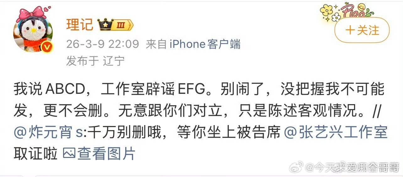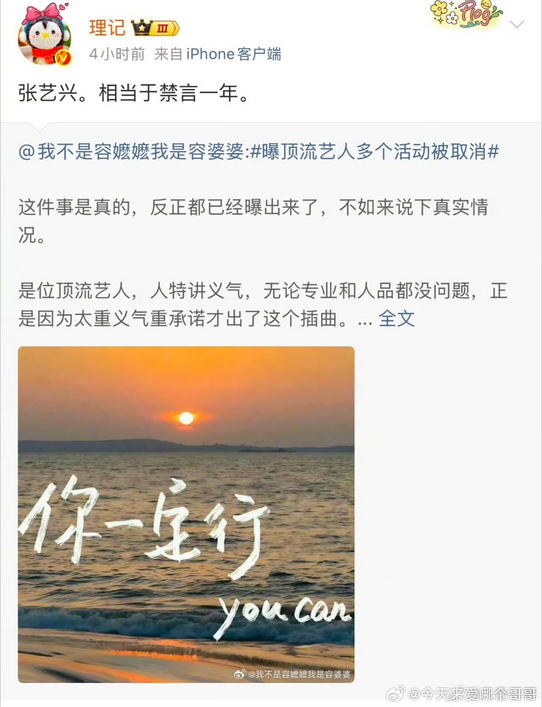 理记在张艺兴工作室发完声明后还在硬刚说他禁言一年