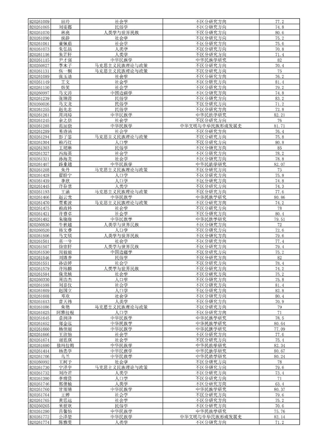 中央民族大学2026博士复试名单