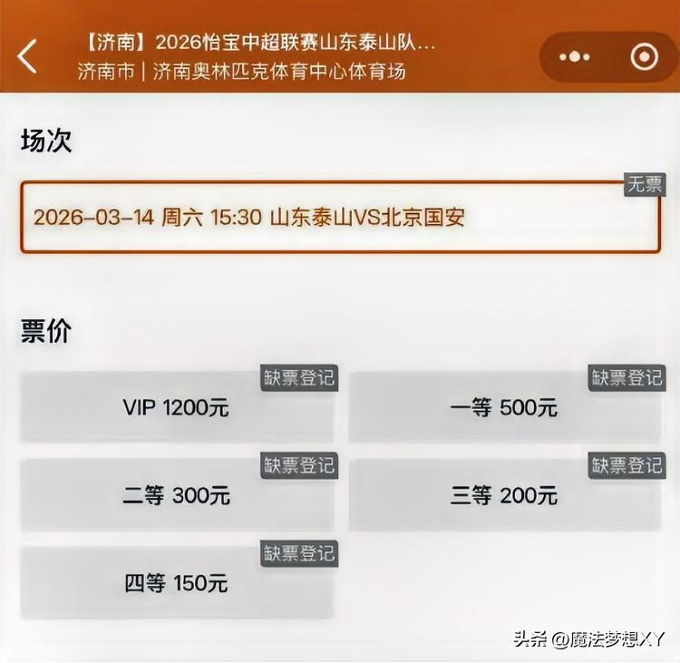 我敢说, 主场对阵国安很大概率, 就是山东泰山球迷一个赛季最 重要的一场比赛! 本周六,中超第2轮山东泰山将在主场迎战北京国安,京鲁大战有多热看看球票卖的有多快就知道了。 据报道,今天这场比赛的门票被放出后立刻就被抢空了,现在每个价位的门票都是缺票登记状态。 对山东泰山球迷来说,每年主场与国安的比赛就是这一个赛季中最重要的一场比赛。山东泰山中超首轮与辽宁铁人的比赛,现场就有3万多球迷到场观赛。 上个赛季,山东泰山在主场6:0大胜国安,本周六,可以想见会有更多的山东球迷来到现场为泰山队加油助威,希望这场比赛能足够精彩~ 大家觉得本周六的京鲁大战比分会是几比几? 山东泰山 北京国安