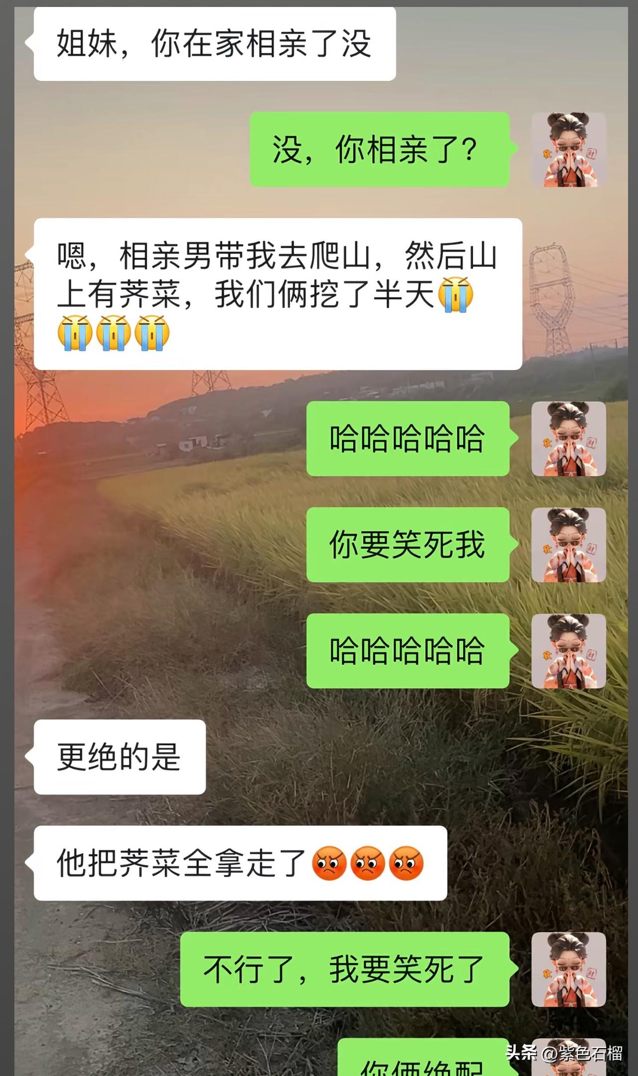 哈哈哈,真是笑死人了!陕西女孩过年相亲这事,简直能把人笑到喷饭!我原本还觉得这女孩模样挺俊俏,谁能料到,她的魅力居然比不过几根野菜! 近日,陕西有个女孩过年去相亲,相亲男约她去爬山。爬到半山腰,发现山上长着不少荠菜,两人便一起挖了半天。按理说,怎么也该给女孩分点儿吧,可这男的倒好,把整袋荠菜都据为己有了。 更搞笑的是,女孩心想,这男的或许会把野菜做成野菜疙瘩或者野菜饺子后,怎么也会给她送些。结果她在家等了好几天,最后等到的是男孩发的几条微信,上面写着:我妈蒸的荠菜疙瘩还挺好吃,还配了一张图片。 不得不说,这男的如此格局,单身真是自找的! 对此,有网友说:“来来带我去挖,挖好做好给你送到单位去。” 还有网友调侃:“太现实了,人家只是为了替你试试毒,你直接把人打死了” 友友们有啥看法?是女孩太计较,还是男孩情商低呢?欢迎在评论区留言讨论。 (图片来源网络)