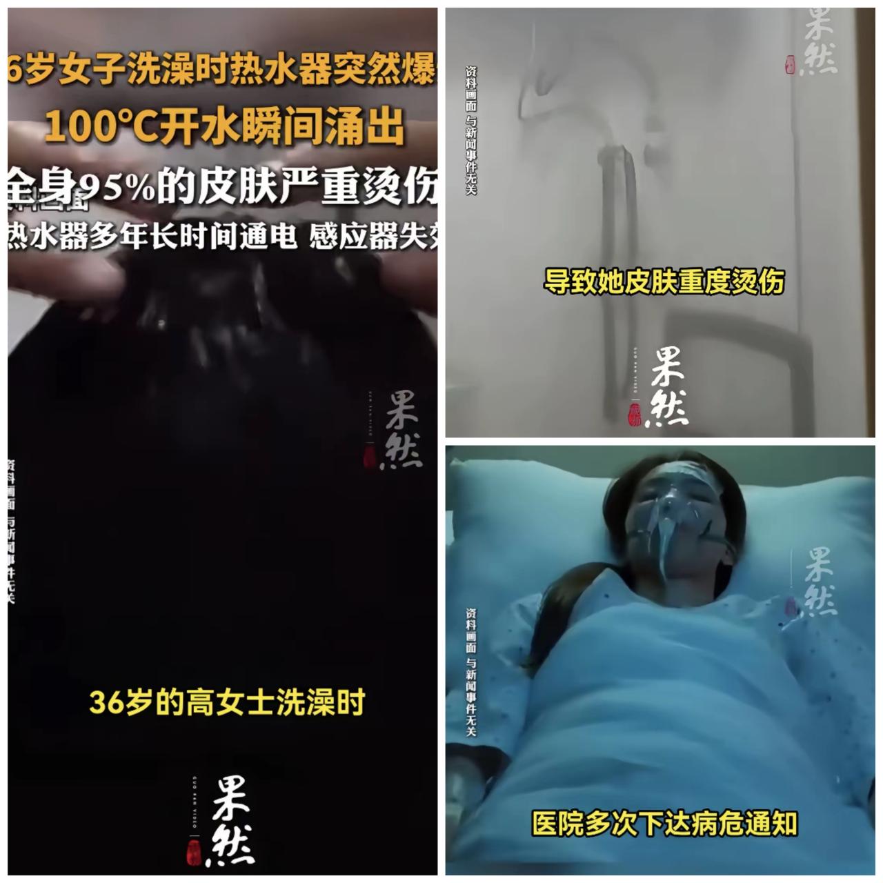 “悲剧还是发生了!”陕西西安,一36岁在浴室洗澡,她一丝不挂,正洗的舒服时,突然,一声巨响,热水器爆炸,100℃开水瞬间兜头淋下,把她烫的皮开肉绽,全身95%的皮肤严重烫伤,医院好几次都下了病危通知书,但女子经过多次手术,还是从鬼门关爬回来,家属本想找热水器厂追责,一查事故原因,都傻眼了。 洗澡时一声巨响,热水器突然炸开,滚烫开水迎头浇下,她全身95%的皮肤被严重烫伤,医院多次发出病危通知。家人悲愤中想追究厂家责任,可当调查结果摆在眼前,所有人都沉默了。 原来这台热水器已服役八年之久,远远超过安全使用年限。更关键的是,这些年从未有人维护——泄压阀完全堵塞,温控器早已失灵,水温在不知不觉中飙升至100℃,内胆压力达到极限,最终导致了这场灾难。 许多家庭总认为“还能用就凑合用”,却忽视了电器也有寿命。超期使用的热水器,就像一颗藏在墙内的“定时炸弹”。每一次转动开关,都可能是与危险擦肩而过。 定期的保养与及时的更换,从来不是小题大做。安全没有侥幸,它藏在日常的细心与责任里。 你家里的电器是否也已“超龄”?来聊聊你的使用习惯与维护心得。