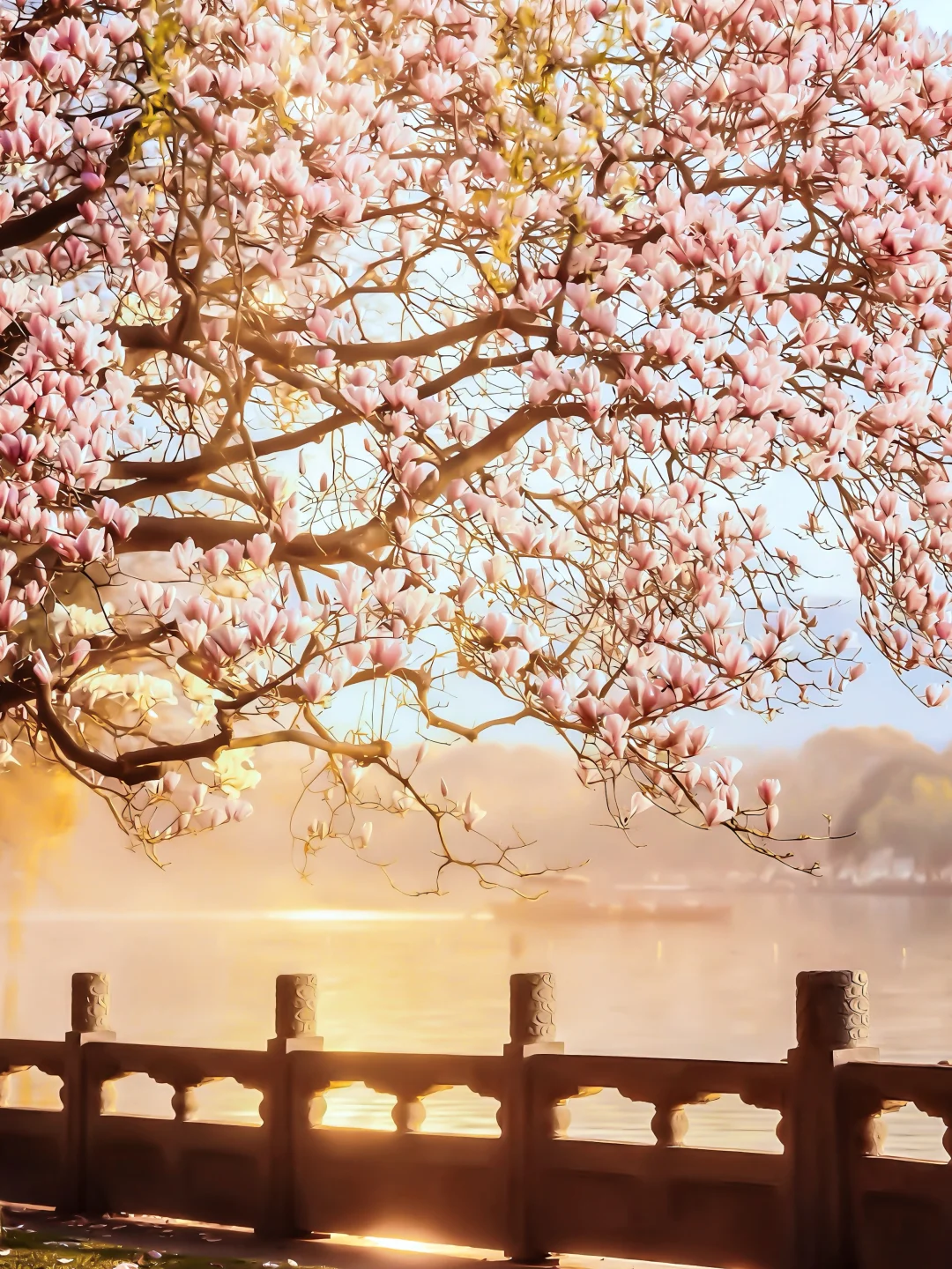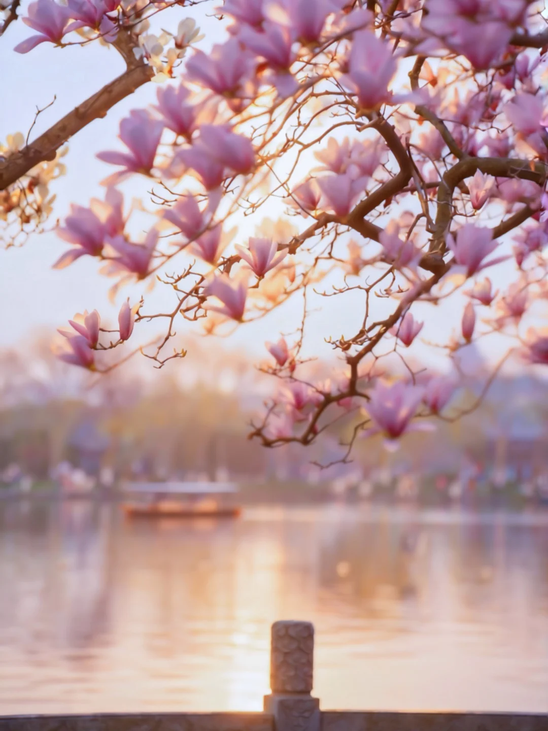 - 每年春天一到, 我最期待的就是西湖这棵玉兰王。 再过几天就要进入全盛期, 真的是错过就要等一整年。 - 它就在西湖国宾馆里面, 刘庄闹中取静的位置, 60多年树龄的二乔玉兰, 满树粉紫开得特别旺, 亭台水榭配着老枝繁花, 隔湖还能和雷峰塔同框, 怎么拍都像一幅江南古画。 - 风一吹,花瓣轻轻飘落, 仙气是真的仙,美也是真的美。 - 📅 花期:盛放倒计时 📍 地址:西湖国宾馆·玉兰王(杨公堤18号) ✨ 拍照小提醒 👉建议一早一晚去,光线柔,人也相对少一点 👉穿浅色系、新中式、汉服都巨出片 👉有长焦一定要带上,能拍到花枝伸向湖面的绝景 - 实话实说,花开后人肯定不会少, 但为了这棵西湖顶流,挤一点也完全值得! -