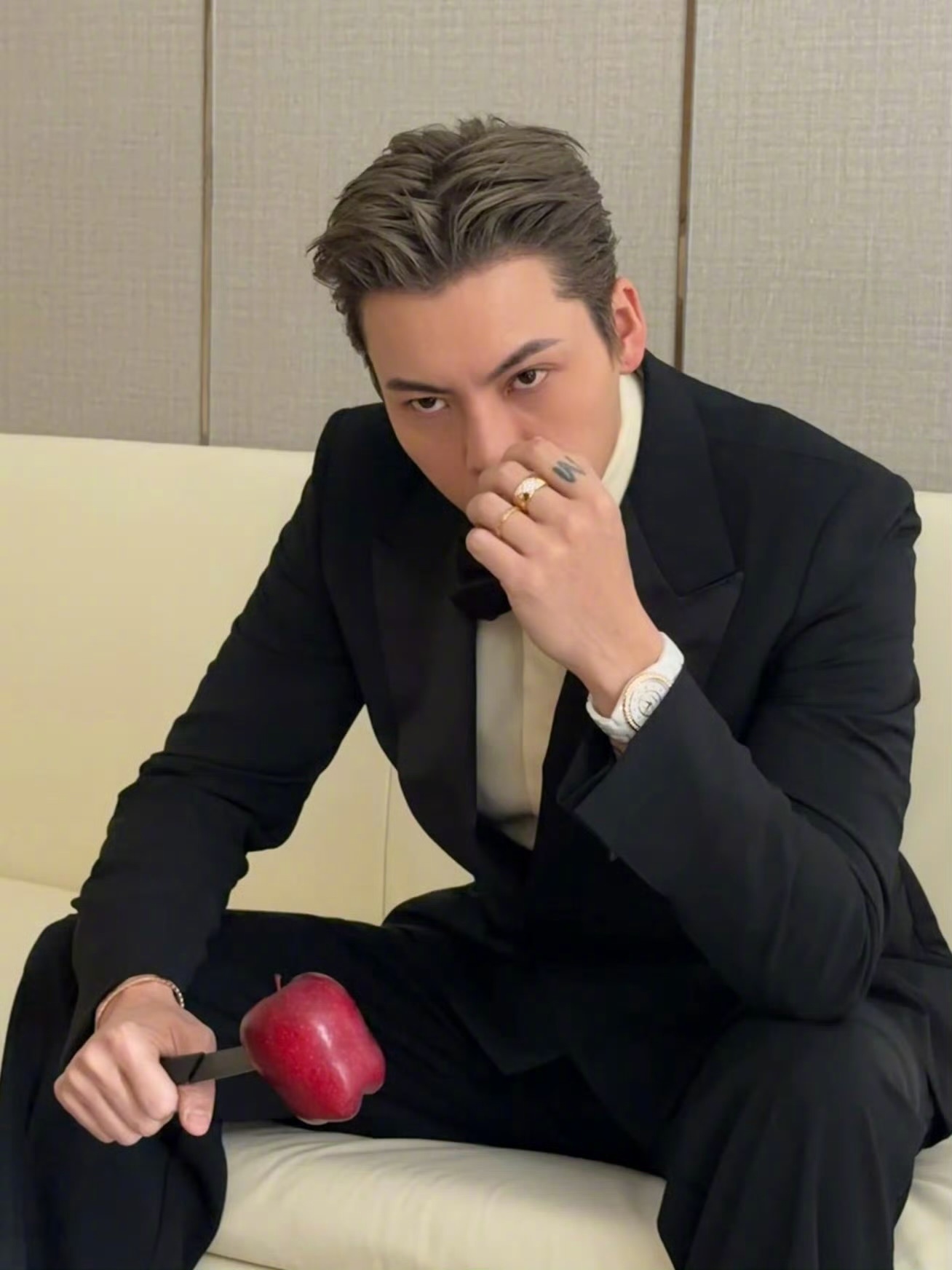 陈伟霆 今日 电视剧品质盛典 造型大片,西装、衬衫 、领结… 再戴上CHANEL的COCO CRUSH系列戒指和J12腕表,危险又迷人的熟男魅力~ 陈伟霆状态