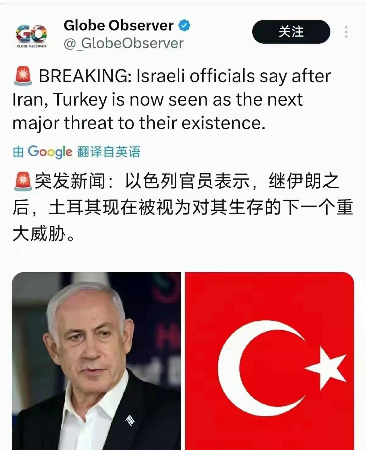 美国要求驻土耳其南部阿达纳总领馆的非必要政府人员及家属撤离。 美国当天将土耳其南部地区的旅行警告级别提升至四级。 这是什么意思?是以色列要跟土耳其开战,还是伊朗要跟土耳其开战? 埃尔多安的苏丹梦能做下去吗? 埃尔多安其实跟伊朗一样,都是哈马斯的后台。但伊朗都被打成这样了,埃尔多安却毫发无伤,还是上蹿下跳,从中取利。 那个帮着朱拉尼欺负库尔德人的特朗普特使巴拉克就是美国驻土耳其大使,巴拉克这么缺德,会不会在这场战争中丧生? 埃尔多安和巴拉克今天晚上能睡着吗?