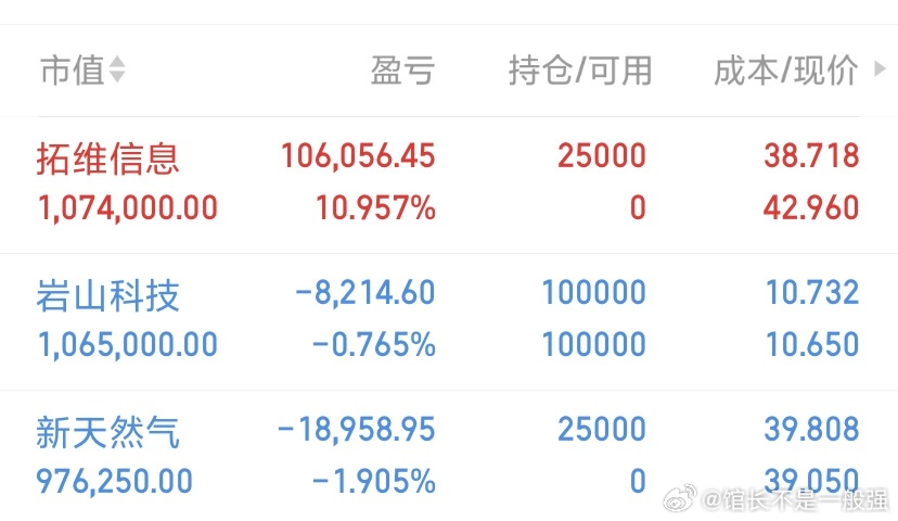 实盘今日分享$拓维信息 sz002261$ $新天然气 sh603393$ 持有$岩山科技 sz002195$