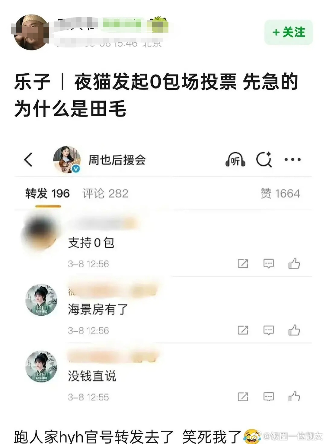 周也和田曦薇粉丝因为云包场交流起来了
