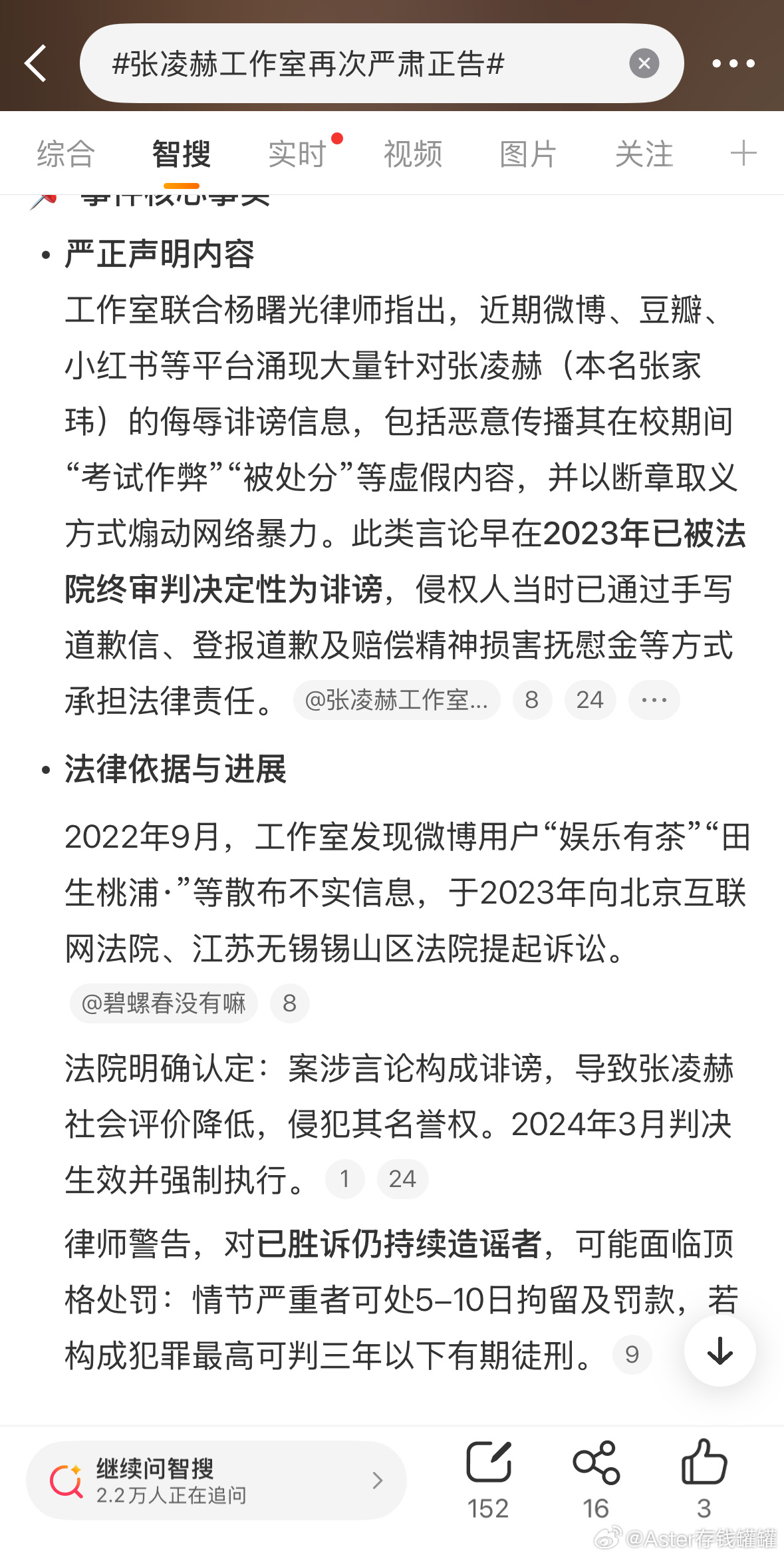 张凌赫工作室再次严肃正告法院在判决中重申言论自由应有边界,此案为相同网络诽谤纠纷提供司法判例,明确捏造事实会降低构成名誉侵权的法律标准。
