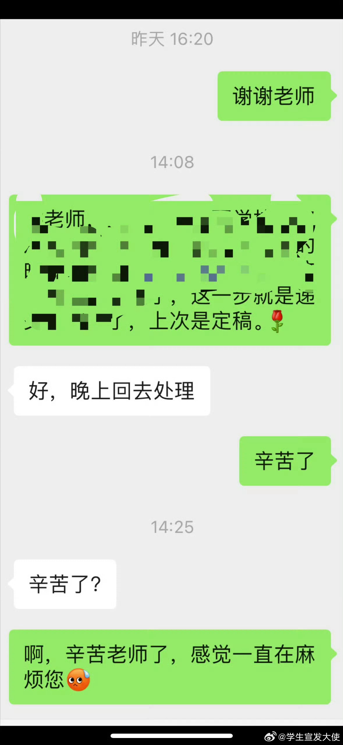 跟老师说辛苦了的后果
