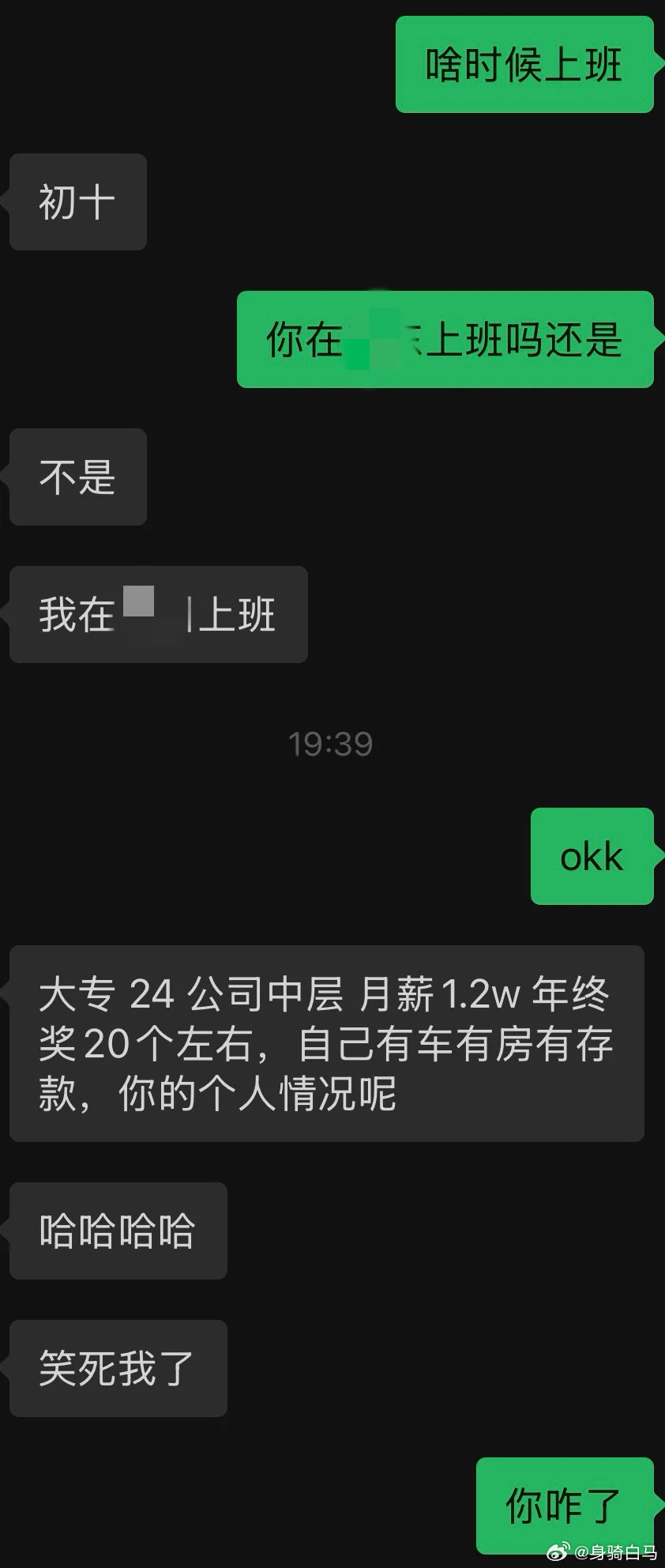 今天面试了一个00后男生,大专学历,去年毕业的。他说他第一份工作基本工资每月45