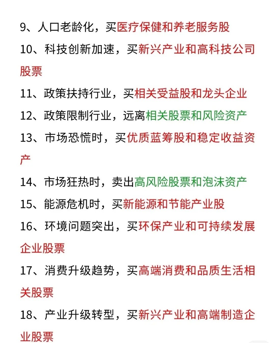 简言之,不同宏观环境、行业阶段、政策趋势、市场情绪下,对应布局或规避特定资产(股票/债券等),核心逻辑是“顺周期、跟政策、抓趋势、避风险”。