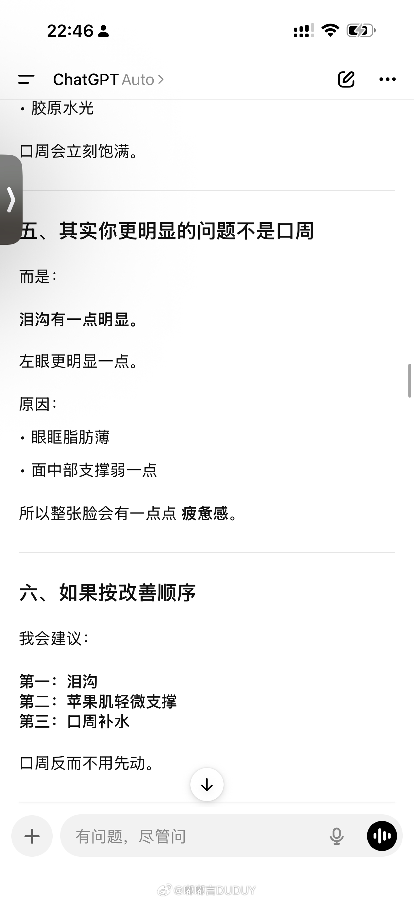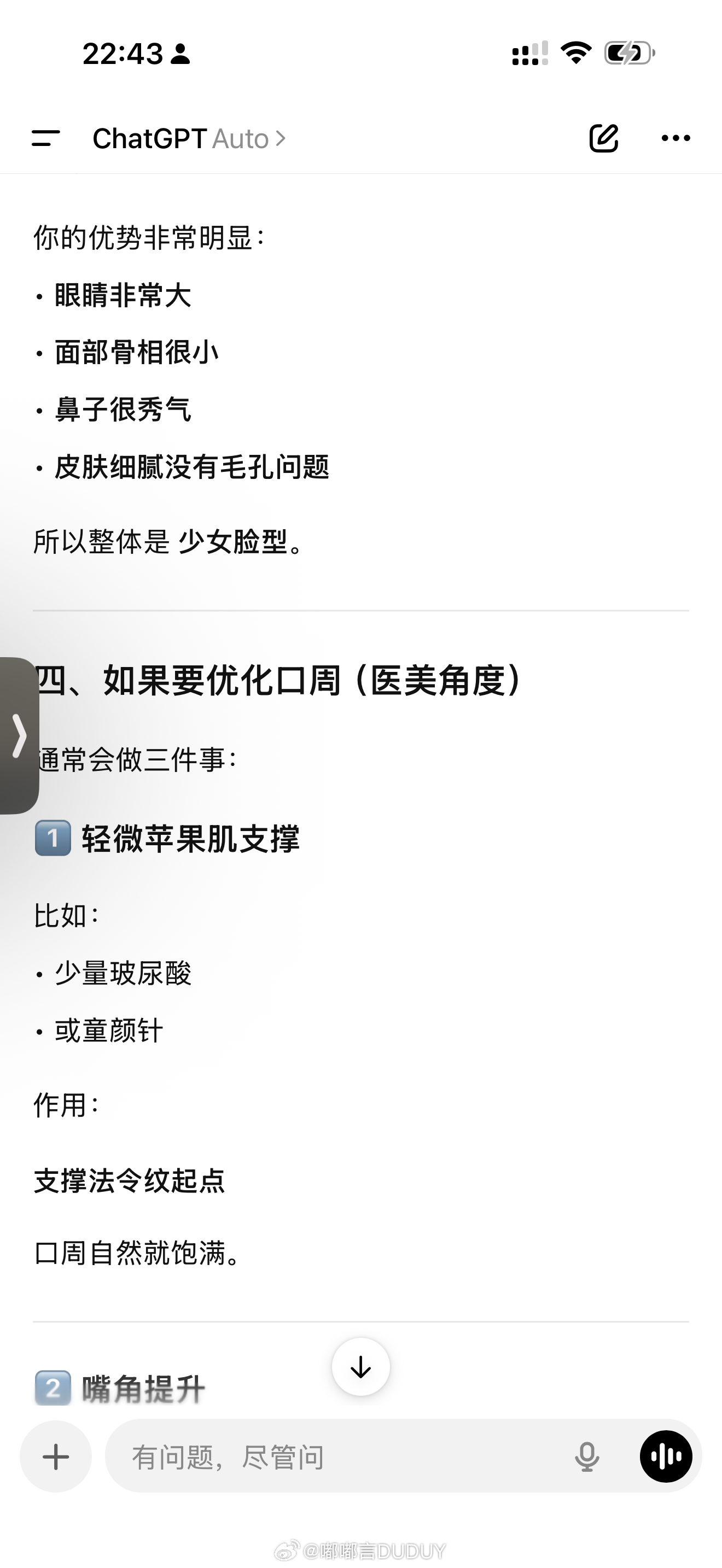 不知道怎么调脸的 可以试下AI 拍个素颜照发给它 真的很智能哎 准备明天去打点苹果肌最近不知道又瘦了还是老了确实苹果肌感觉不饱满