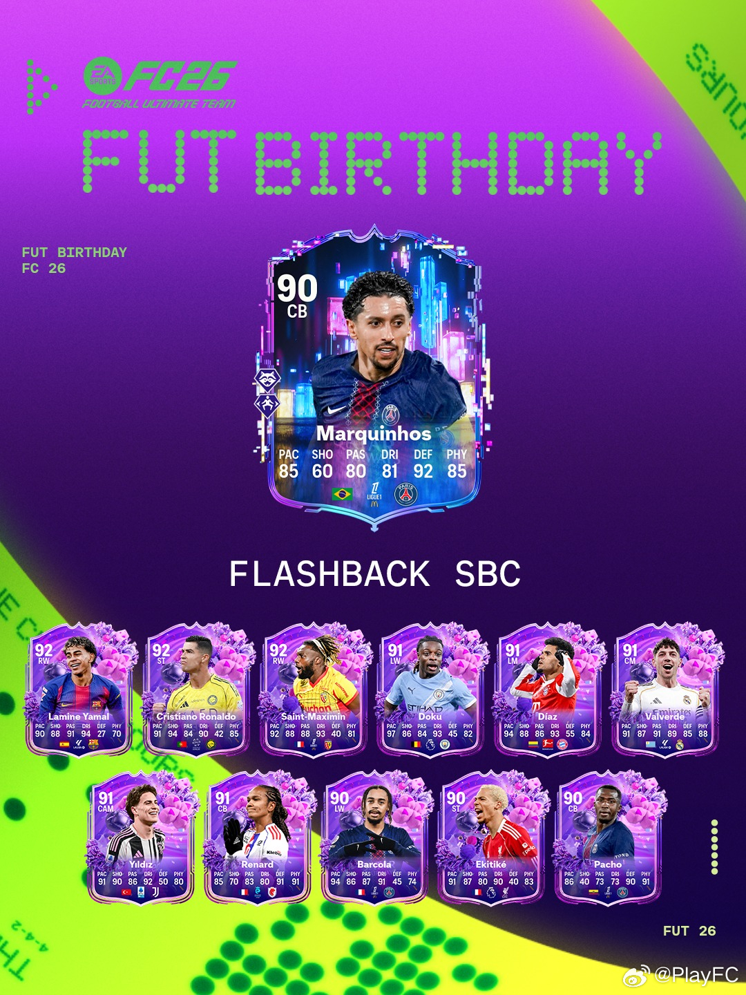 3月10日【新增 SBC】共 5 个:1. FUT 生日挑战 2|1 个挑战2. 80+ 球员 10 选 4|可重复3次|2 个挑战3. 81+ 球员 3 选 1|可无限重复|1 个挑战4. 五星级球员进化|2 个挑战5. Marquinhos|6 个挑战