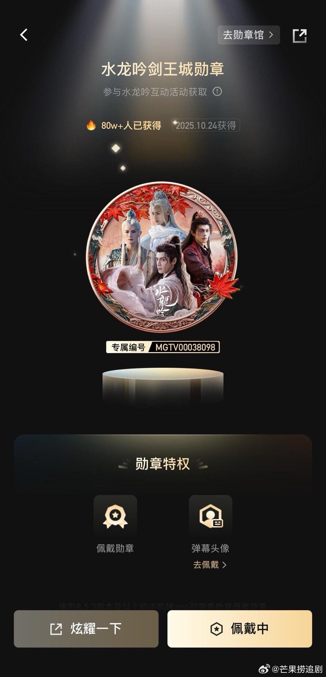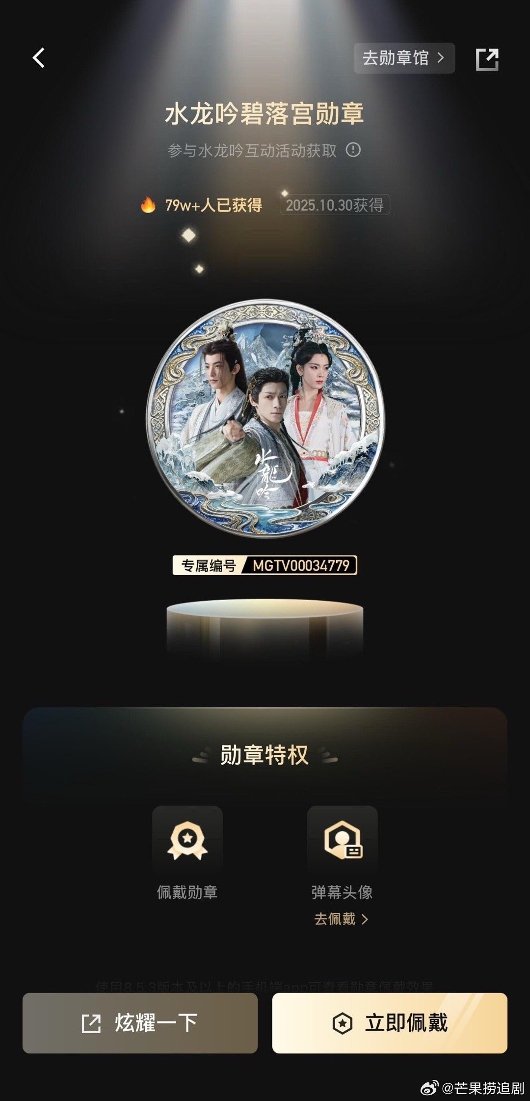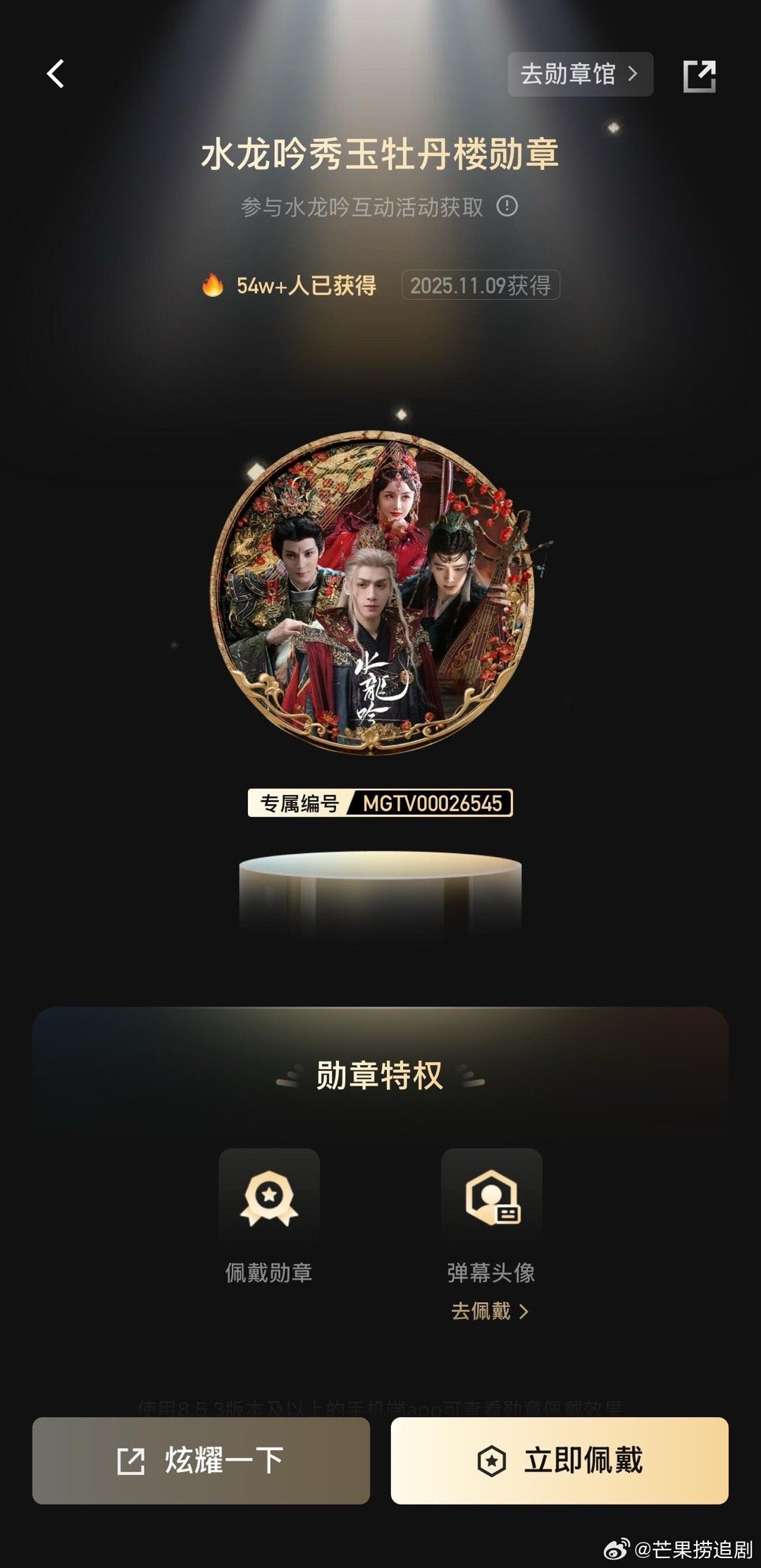 《水龙吟》剧集长尾效应持续发力,累计播放量已达49.5亿,更有245万观众成功解锁剧集徽章。徽章获取门槛高、条件严,每一枚都来自观众真正的追完与认可,让观众看到平台不搞虚浮、追求真实收视与口碑的决心。