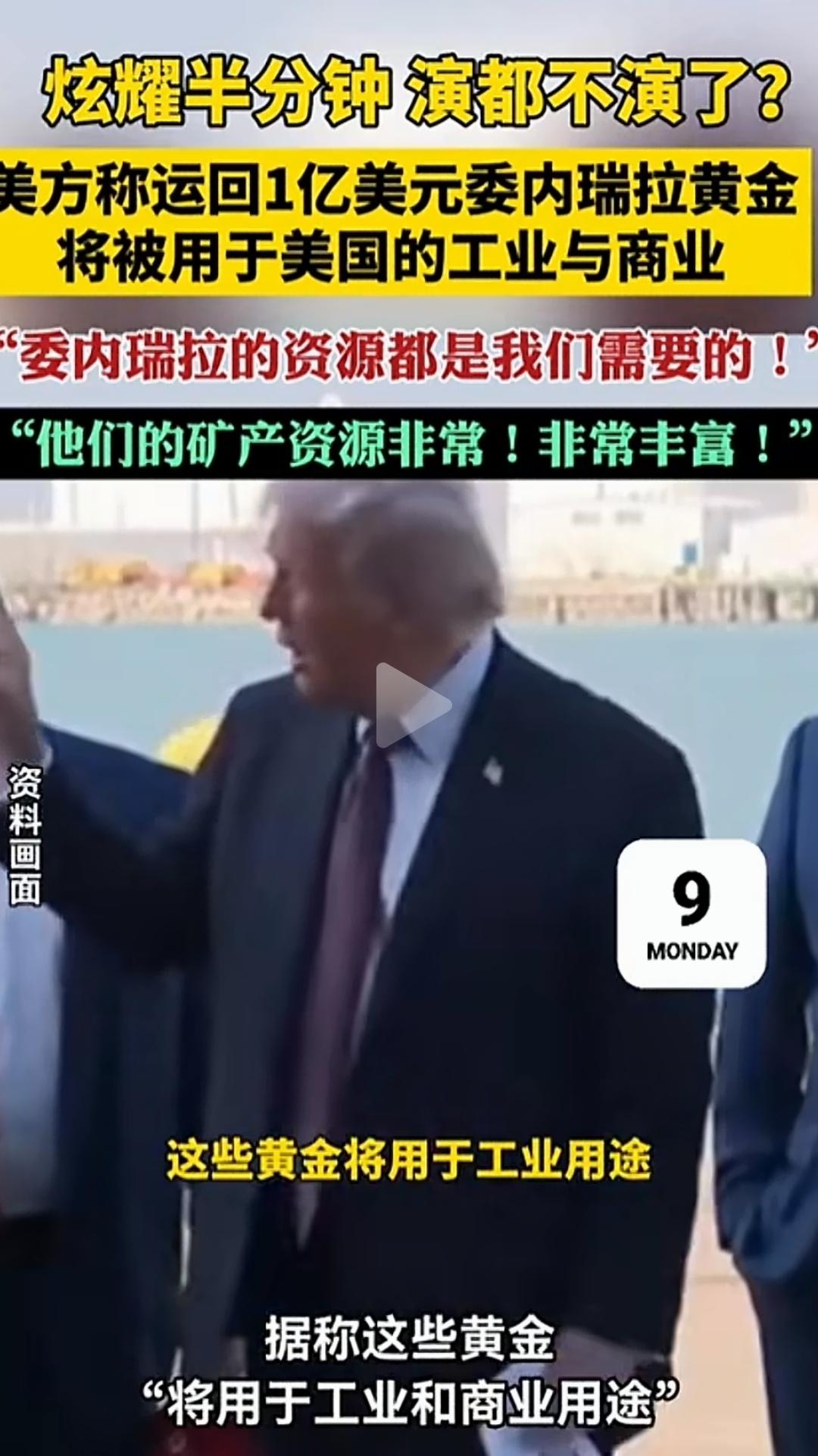 强盗开始炫耀他们的战利品。 美国将价值1亿美元委内瑞拉黄金运回国。 这就是妥妥的土匪进村一样。 说实话,真没有想到在21世纪还能见到历史书上的名词在生活中再现。 关键是这些人不以为耻反以为荣。 我还差点搞忘了他们没有道德这个概念,所以怎么会有荣耻观呢? 又不是我们中国人。 点右上角关注我,我们一起去看这个魔幻的世界