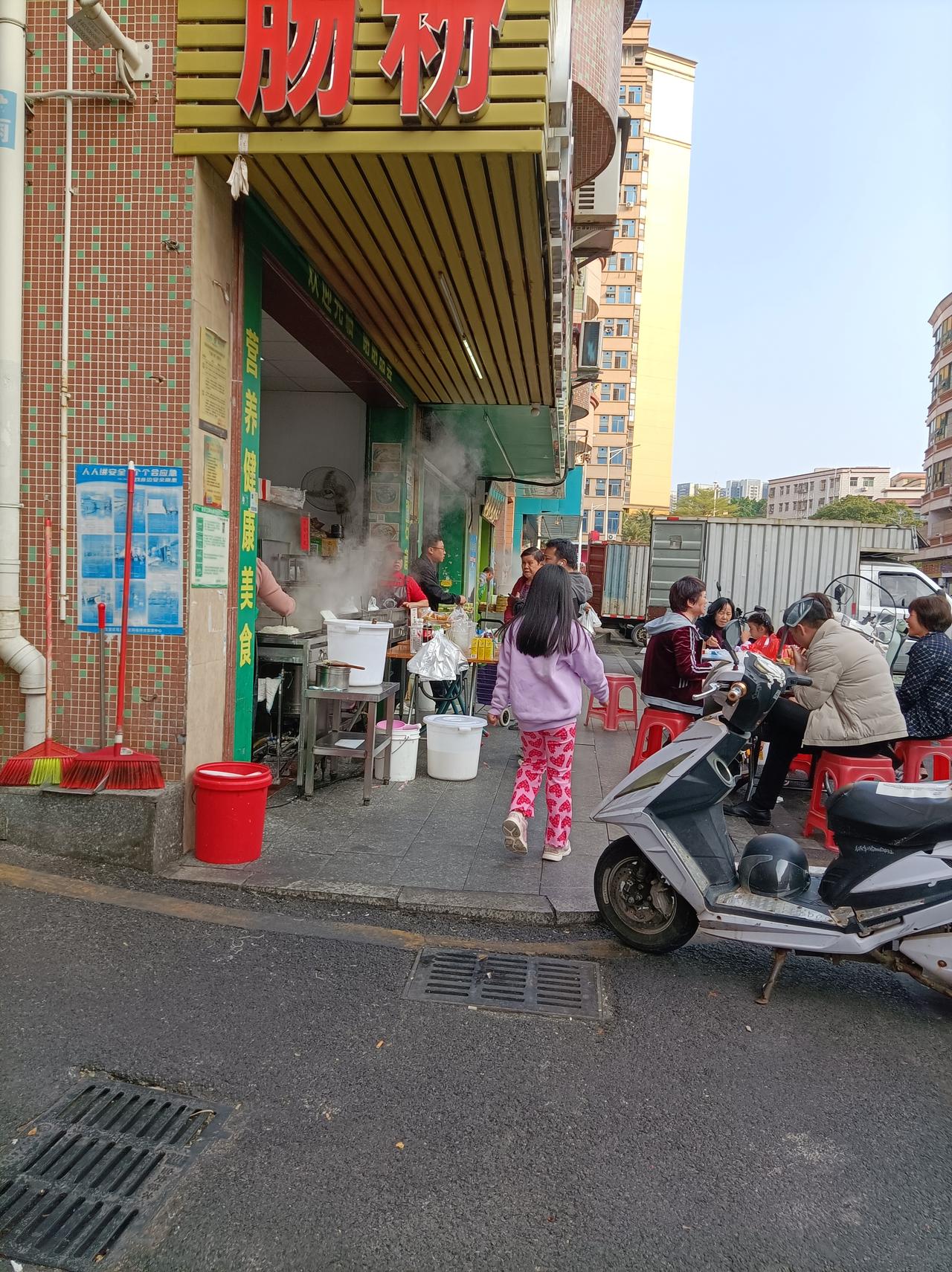 分享今日街头美景早上的街头美景,肠粉店前很热闹,吃肠粉的人很多,但边上的汤包店却