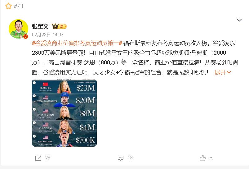 ”💸冬奥会刚落幕,福布斯榜单就炸了!21岁谷爱凌年入2300万美元,碾压99%运动员,第五名连她零头都不到。当普通人还在为月薪过万拼命,她已把滑雪板变成“印钞机”,这差距咋来的?天赋+家庭是底牌,但谷爱凌更狠的是把个人IP玩到极致,跨界时尚、教育、科技,代言接到手软。普通运动员想复制?先学会把技能“包装”成全球影响力!💡这个时代,肌肉不值钱,影响力才是一切!当谷爱凌在商海乘风破浪,多少运动员还在为训练费发愁?别埋头苦练了,学会“营销自己”才是王道!💬你觉得她的成功能复制吗?评论区聊聊你会咋把自己的技能变成“印钞机”?