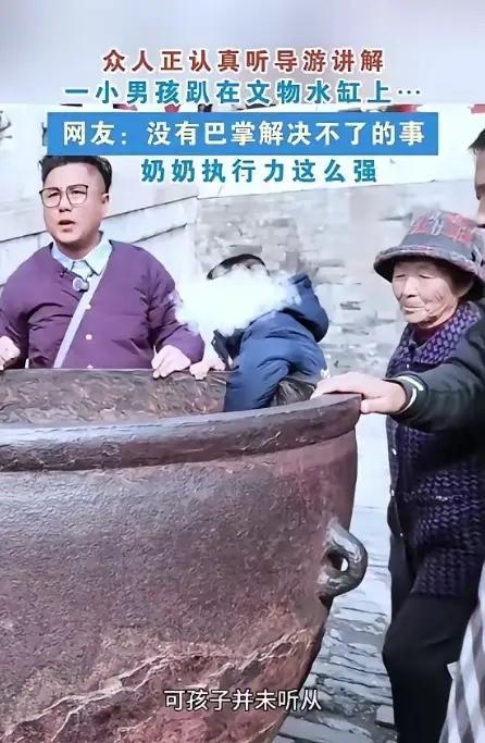 一导游正在故宫一口大缸前讲解,这时,一名小男孩突然凑上前,开始攀爬古缸。导游发现后温柔劝阻,旁边的爷爷也过去要抱男孩下来,但小男孩就是不撒手,奶奶见状,直接给了小男孩一巴掌,之后,男孩彻底老实! 现场的讲解声戛然而止,所有游客的目光都聚焦在这祖孙三人身上。导游举着扩音器的手停在半空,脸上的笑容僵了一瞬,显然没料到会出现这样的场面。被打的小男孩没敢放声哭,只把脸埋进爷爷的领口,肩膀一抽一抽的,小手还紧紧抓着古缸的边缘,好半天才被爷爷轻轻掰开。 很多人没注意到,导游当时讲解的那口大缸,并非普通的陈设。根据故宫博物院的公开资料,故宫里现存的铁缸、铜缸多为清代铸造,核心作用是储水防火,部分带有鎏金工艺的大缸更是被列为国家二级文物。这些古缸历经数百年风雨,缸体本身存在不同程度的磨损,表面的包浆和纹路都是珍贵的历史印记。小男孩攀爬时,鞋底的摩擦力已经让缸沿的漆面出现了轻微划痕,这也是导游第一时间上前劝阻的核心原因。 奶奶的巴掌确实立竿见影,却也让现场的气氛变得格外微妙。周围游客窃窃私语,有人觉得奶奶下手太急,孩子年纪小,好好说总能听进去;也有人附和,说现在的孩子被惯得没规矩,不严厉制止根本不知道轻重。两种声音交织,恰好戳中了当下家庭教育和文物保护的双重痛点。 爷爷抱着男孩往后退了两步,对着导游连连摆手道歉,嘴里反复说着“孩子不懂事,添麻烦了”。奶奶站在一旁,脸色依旧紧绷,只是看向孙子时,眼神里闪过一丝心疼,却还是硬着嗓子说:“让你别乱摸!这是老祖宗的东西,摔坏了你赔得起吗?”她的话里带着焦虑,却始终没跟孩子解释,为什么不能碰这口缸,为什么导游的劝阻是必要的。 导游很快调整了状态,她没有追究划痕的事,只是走到男孩身边,轻轻摸了摸他的头,指着缸身的铭文说:“小朋友,你看这些刻痕,是几百年前的工匠一点点铸出来的。你刚才爬上去,不仅可能把自己摔疼,还会把这些珍贵的痕迹弄坏,坏了就再也修不回原来的样子了。”男孩抬起满是泪痕的脸,看着导游,又看了看那口大缸,轻轻点了点头。 这一幕之所以引发关注,根源从来不是一巴掌的对错。《中华人民共和国文物保护法》明确规定,禁止任何单位和个人刻划、涂污、损坏国家保护的文物,监护人对未成年人的此类行为负有直接监管责任。奶奶的行为,本质上是履行监护责任的一种极端方式,她清楚文物碰不得,也知道孩子的执拗可能引发危险,却选择了最直接也最粗糙的手段。 问题的关键在于,暴力能制止一时的行为,却很难建立长久的规则意识。小男孩此刻的“老实”,是源于对疼痛的恐惧,而非对文物的敬畏。如果家长能在导游劝阻时,蹲下来跟孩子讲清楚文物的价值,讲清楚攀爬的危险,孩子未必会执意不撒手。 故宫每年都会接到数十起游客损坏文物的投诉,涉事者不乏未成年人,背后往往站着疏于引导的家长。我们总说要敬畏历史、保护文物,这份敬畏不该只停留在成年人的认知里,更要通过温和的方式,传递给每一个孩子。 教育的温度和规则的底线,从来都不该对立。文物保护需要坚守原则,家庭教育更需要守住温情,唯有如此,才能让孩子真正懂得敬畏,学会守规矩。 各位读者你们怎么看?欢迎在评论区讨论。