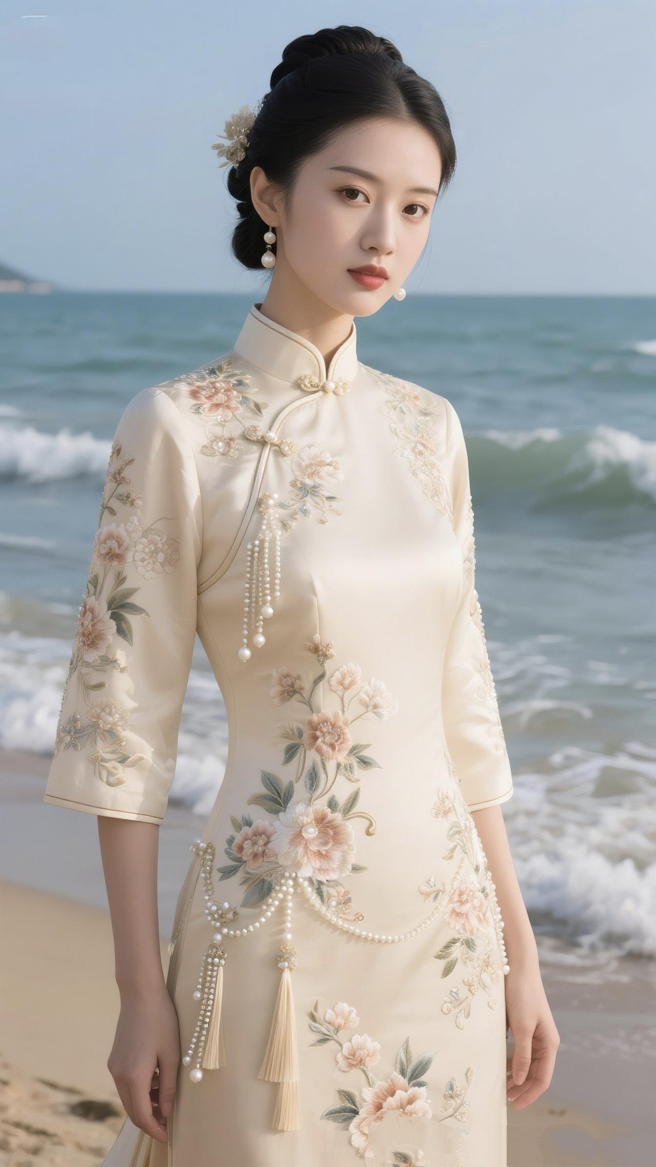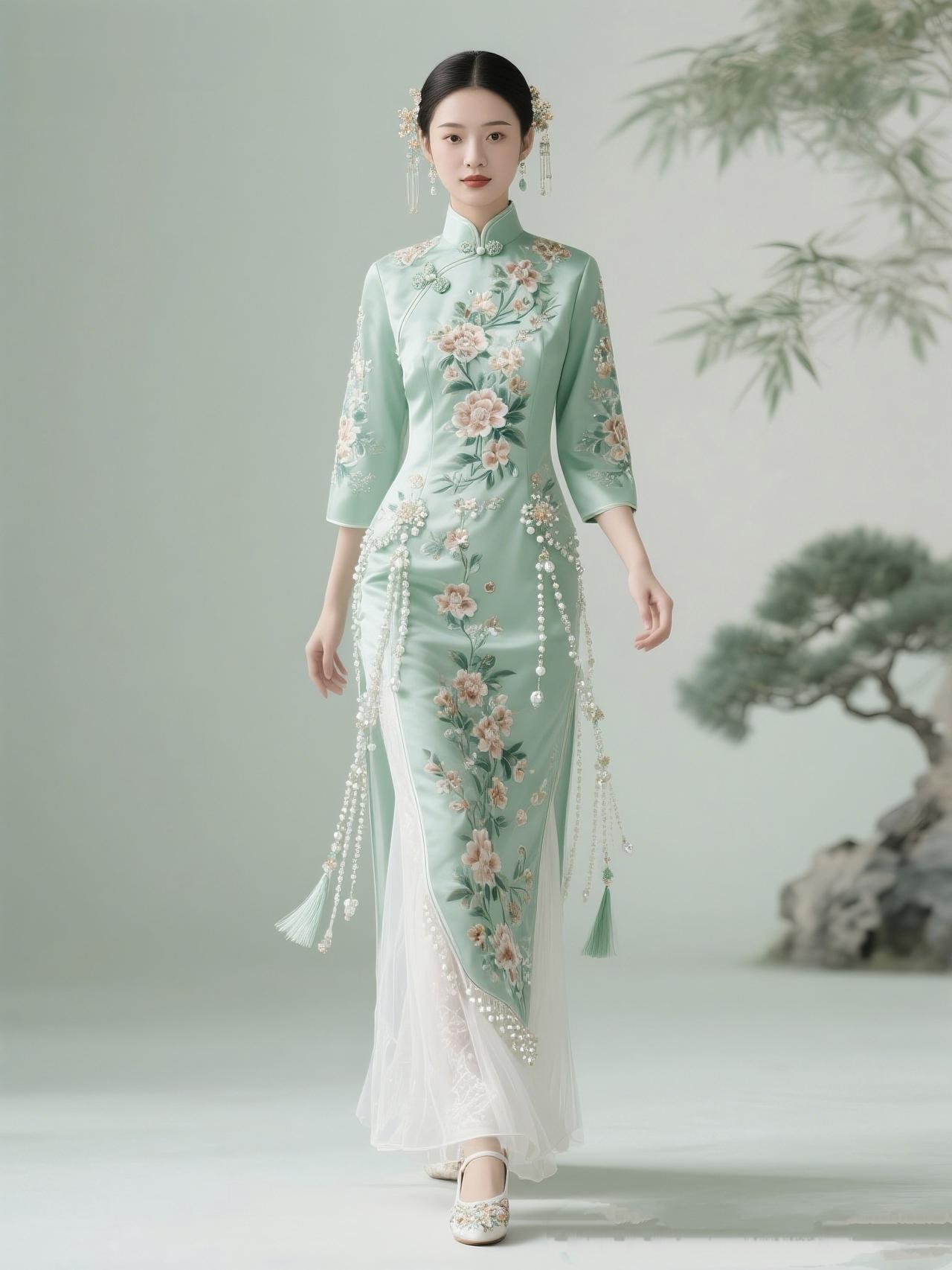 《一衣旗袍,半生从容》 针脚织就岁月长, 剪裁清风入襟裳。 立领微扬风骨在, 不与浮华较短长。 盘扣轻绾流年影, 素色暗纹藏清宁。 裙摆轻摇风细细, 一步温婉一倾城。 不羡霓裳争艳色, 偏爱素心自淡泊。 历经风雨添雅韵, 眉眼安然皆是歌。 一衣裹尽尘与霜, 半生从容自芬芳。 时光不语凝诗意, 烟火人间亦端庄。