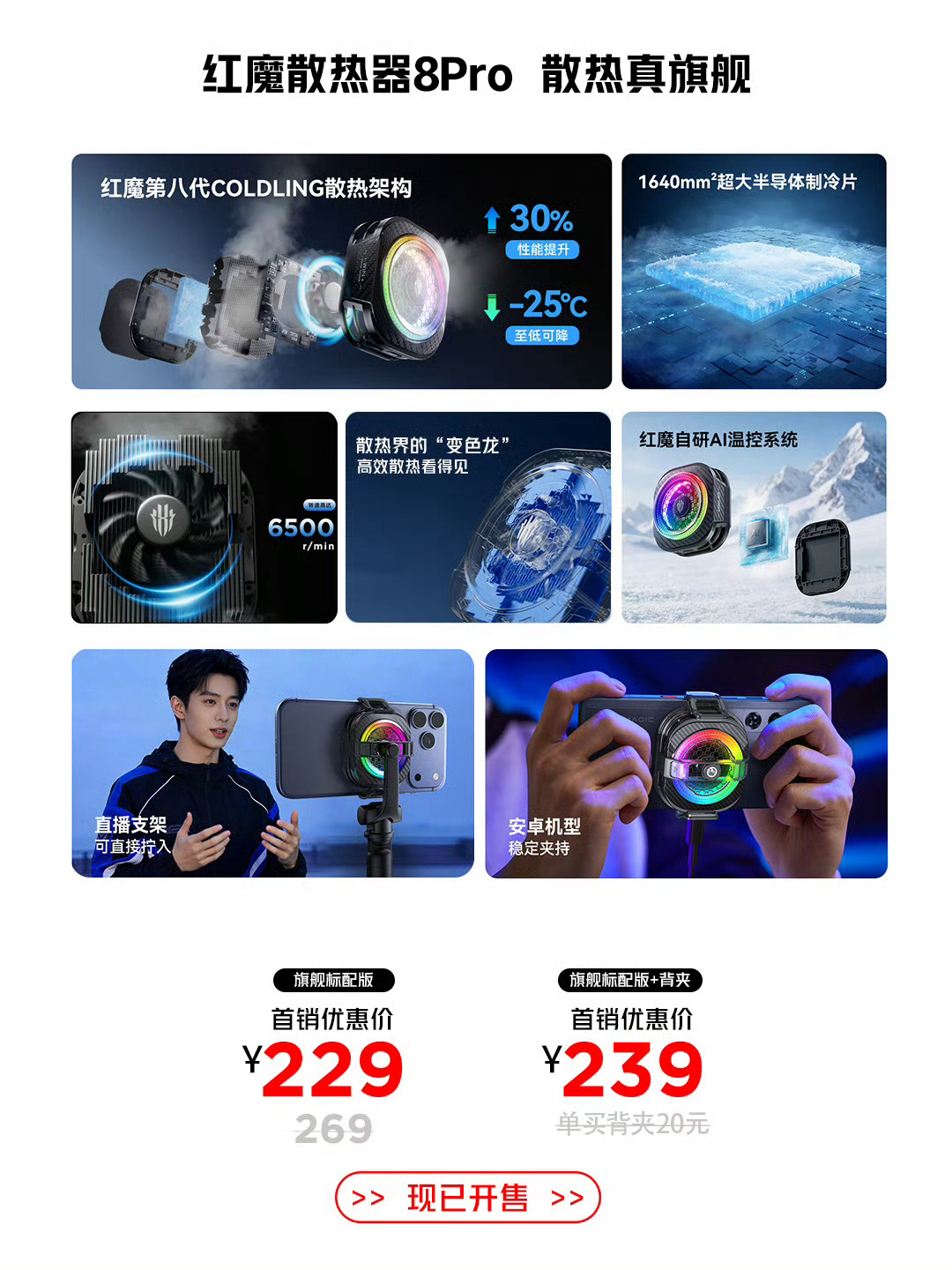 红魔散热器8Pro售价:269元(首销优惠229元)起红魔散热器8Air售价:首销价129元起