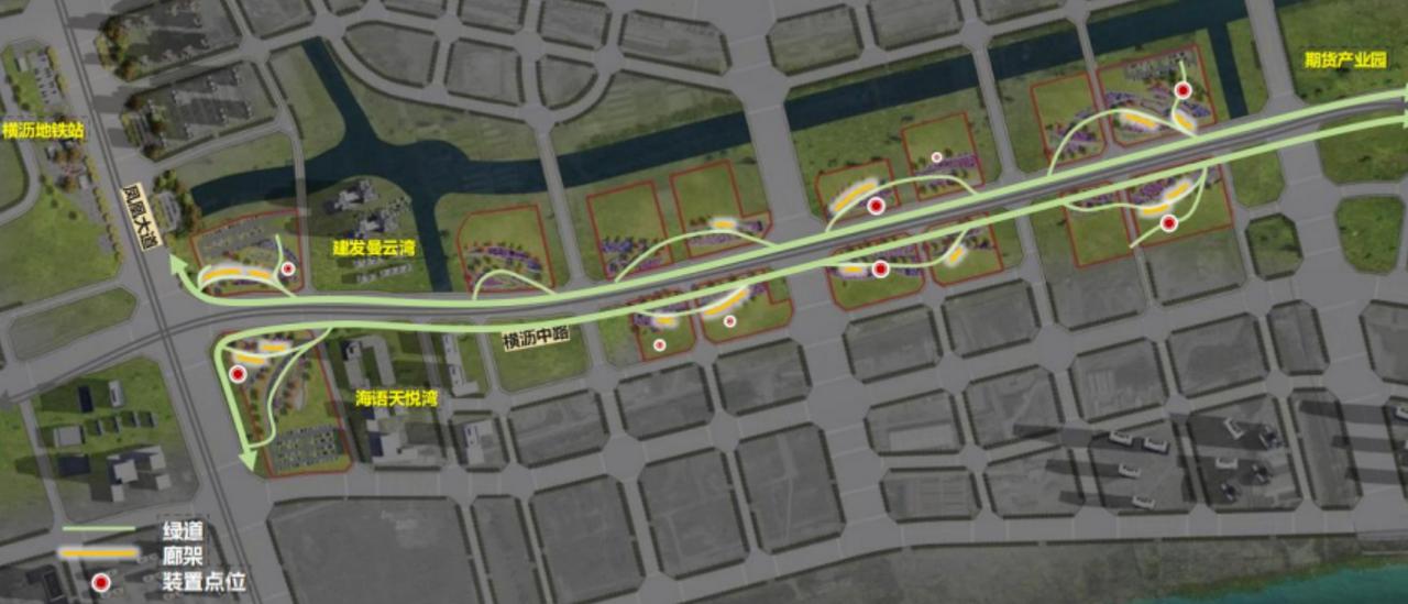 【横沥岛尖将新增15个公园】南沙区林业园林建设发展中心(广州南沙湿地建设服务中心)发布明珠湾片区土地综合提升工程设计施工总承包招标公告。其中横沥岛尖将新增15个公园,布置步行道,设置风雨廊架等等。 公告表示横沥岛尖(主要选取横沥中路两侧约15个地块)横沥中路两侧地块现状场地风貌杂乱,黄土裸露,与周边高端金融商务的形象严重不符。缺乏休闲活动空间与服务设施,无法满足已入驻人群需求。 可以看到本次选取的地块活化升级为公园总体布局沿横沥中路打造展翼的艺术生态中轴,以黑脸琵鹭展翼姿态为总图骨架,步行道沿主线延伸、步行道分支、绿化组团模拟羽翼肌理,构建舒展灵动的空间形态。项目将打造三大公园区,分别为可食用、药赏等植物营造模块化主题式花园的可食花园;栽植四季花卉色块化、营造四季的绿美花园;采用芳香、色叶植物多层次复合搭配,营造以康养为主的疗愈花园等三大场景。 横沥岛横沥中路(凤凰大道-安益路段)全长1.7km,15处存量土地红线面积总计20.5万㎡,主要建设内容包括:①活力步行道串联;②风雨廊架;③生态停车场;④驿站(厕所)。沿横沥中路两侧布置步行道,通过多维绿美提升,补充人民游憩功能,形成可进入可参与的绿美空间。步行道规划长度为2.4km,设置风雨廊架,预留艺术点位。 升级完成之后,横沥中路将会成为直达南沙国际会展中心的最美会展大道。考虑到目前横沥中路并没有太多楼盘,感觉对建发湾玺和天悦海语湾是个不错的利好。