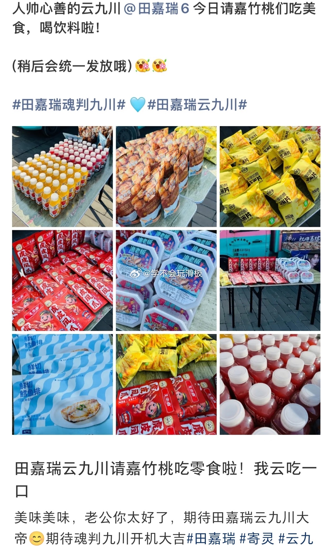 田嘉瑞《魂判九州》开机大吉,田嘉瑞逆应援粉丝,请大家吃美食喝饮料。田嘉瑞