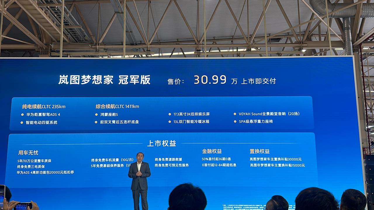 岚图梦想家迎来第 20 万辆下线,车主是奥运冠军杨威哦 岚图梦想家冠军版也同步上市,售价 30.99 万,相较预售价下调了 1 万 ADS 4.1、鸿蒙座舱 5 、悬浮重力座椅、后排娱乐屏、冷暖冰箱齐全!
