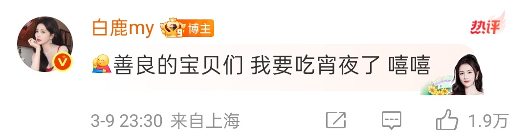 白鹿申请吃个夜宵 电子闺蜜又来给粉丝报备了,很饿,要吃夜宵了~白鹿夜宵吃炸鸡白鹿说自己不进组圆了