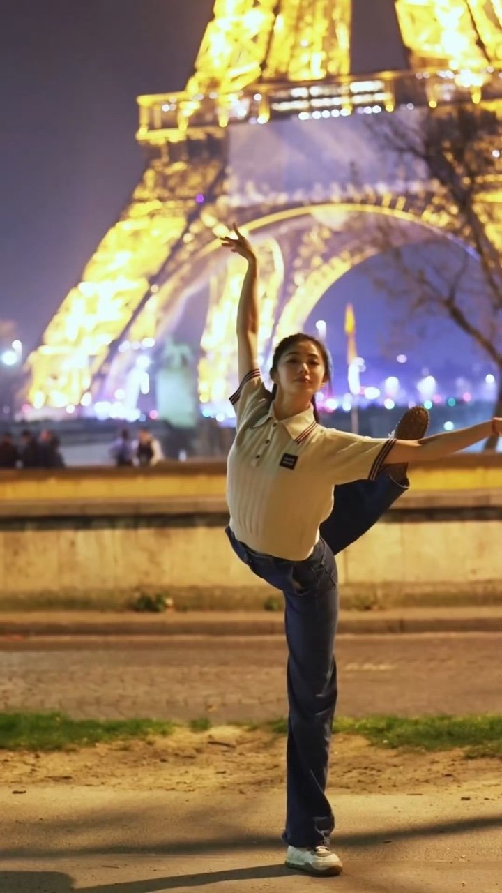 刘浩存从春晚跳到了巴黎埃菲尔铁塔刘浩存从春晚一路跳到埃菲尔铁塔高兴就爱舞两下的