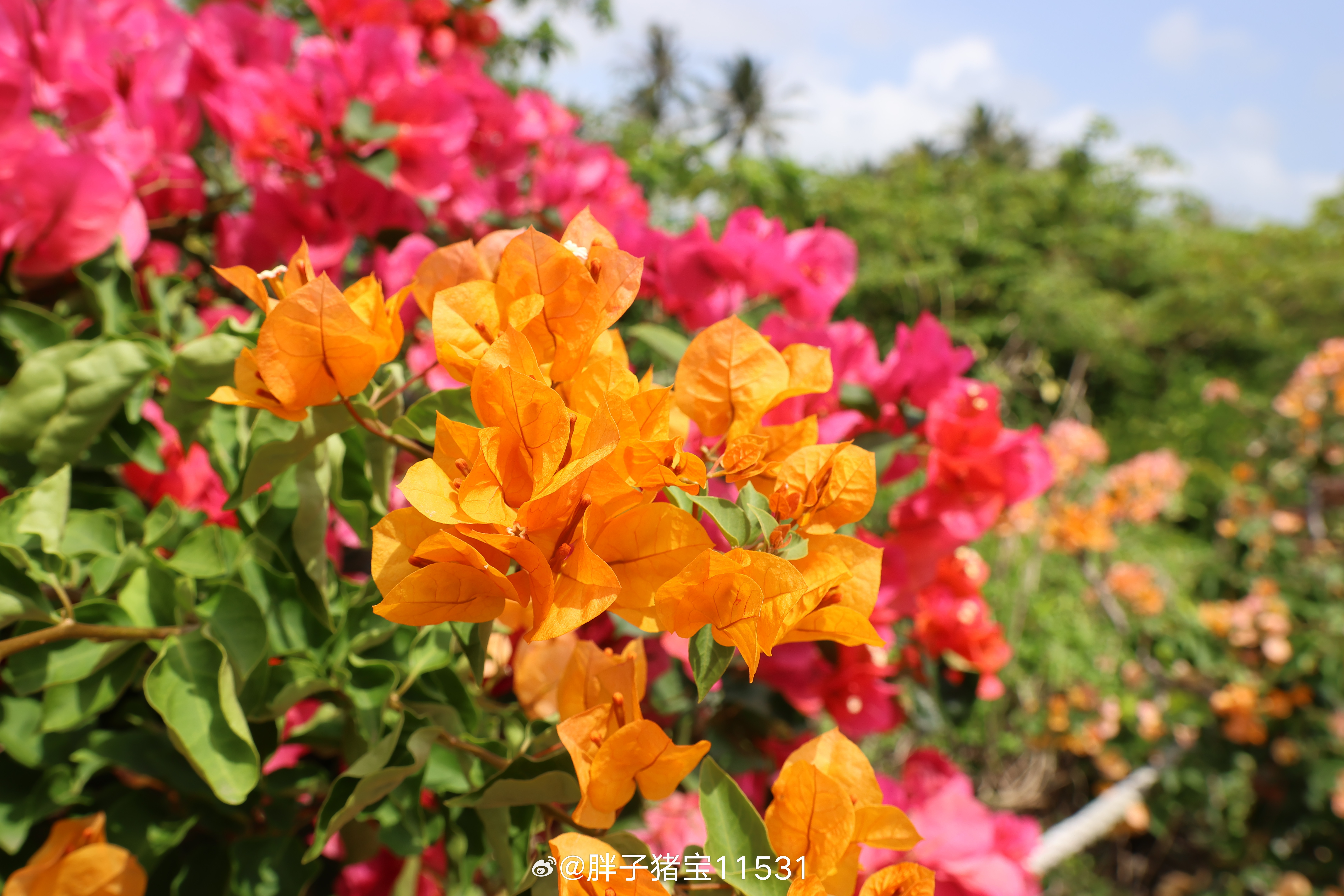 万宁溪边村的三角梅盛宴这会正好是三角梅的盛花期